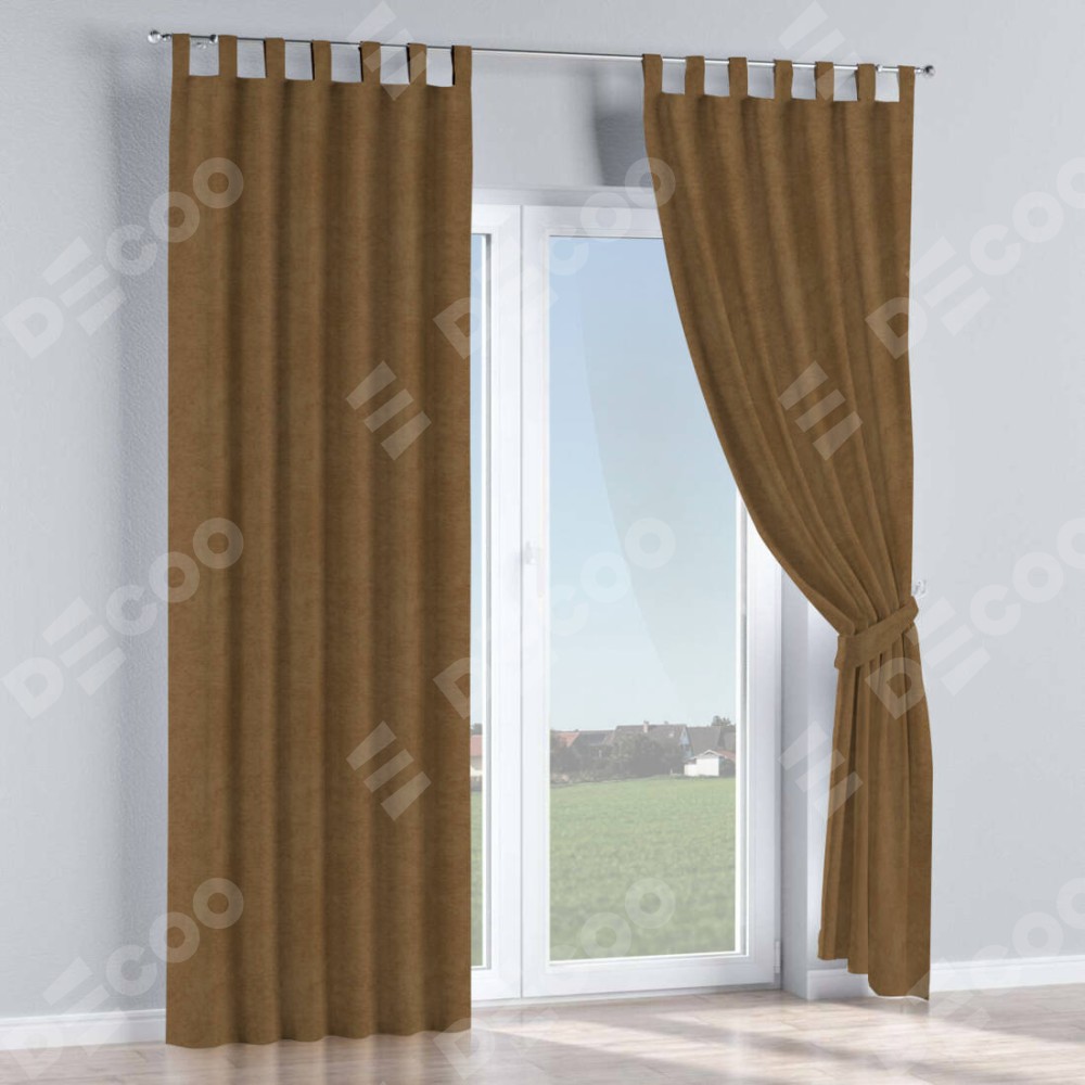 Комплект прямых штор, от производителя «Cortin», пошиты из ткани софт однотонный бронзовый, артикул ткани 33 099. Данная модель пошита на петлях, комплектуется на выбор круглым карнизом и подходит для монтажа на стену или потолок. Прямые шторы на петлях шьются по стандарту с коэффициентом 1/2 (на 100 см. ширины проёма 200 см. ширины ткани), отличительным преимуществом данной модели является простой способ монтажа. Достаточно повесить ее на трубу и штора готова!