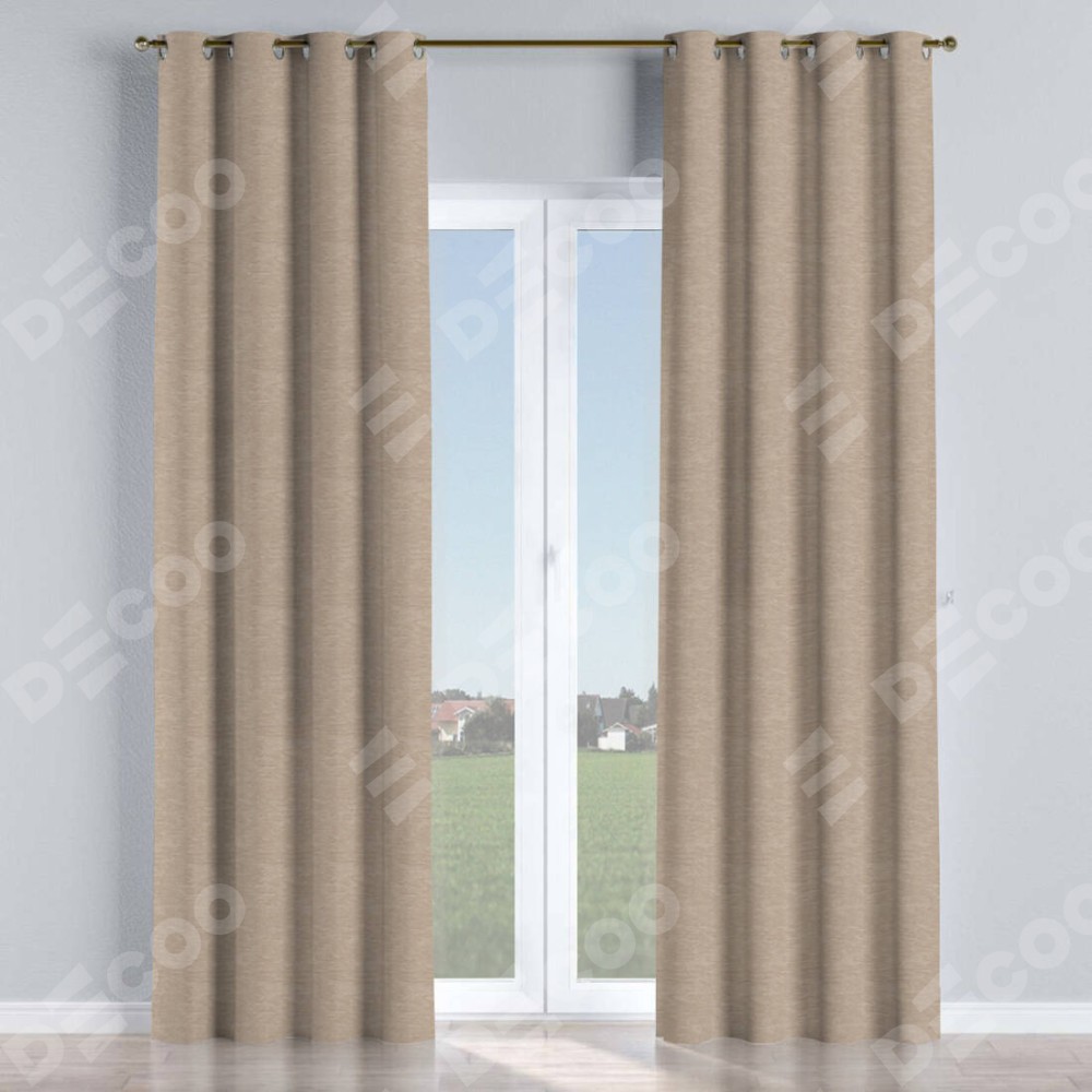 Комплект прямых штор, от производителя «Cortin», пошиты из ткани софт однотонный тёмно-бежевый, артикул ткани 1640. Данная модель пошита на люверсах, комплектуется на выбор круглым карнизом и подходит для монтажа на стену или потолок. Прямые шторы на люверсах шьются по стандарту с коэффициентом 1/2 (на 100 см. ширины проёма 200 см. ширины ткани), отличительным преимуществом данной модели является простой способ монтажа. Достаточно повесить ее на трубу и штора готова!