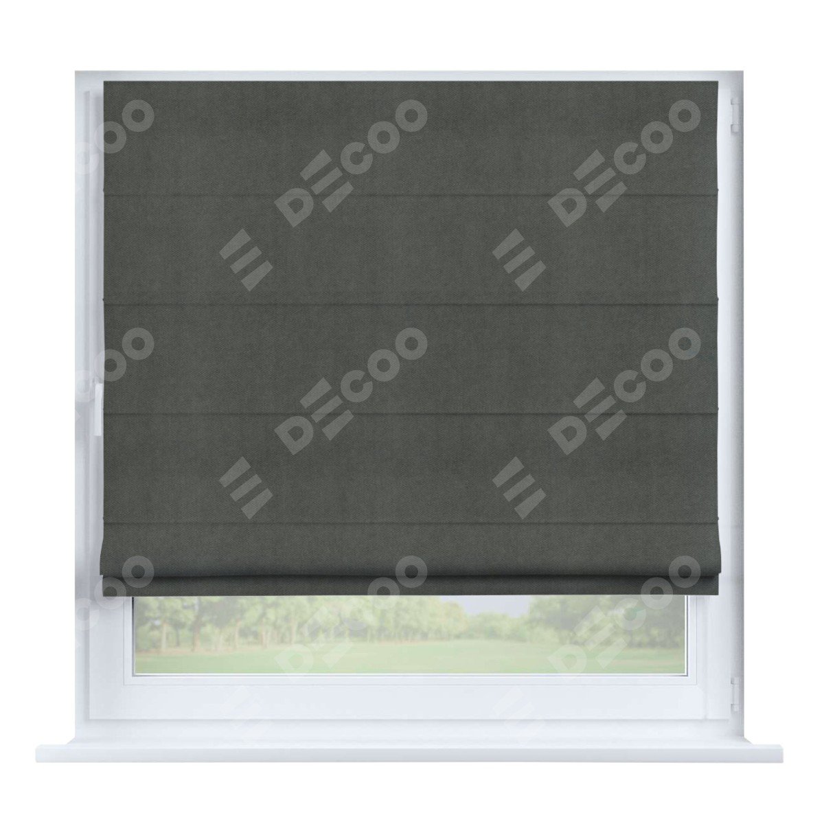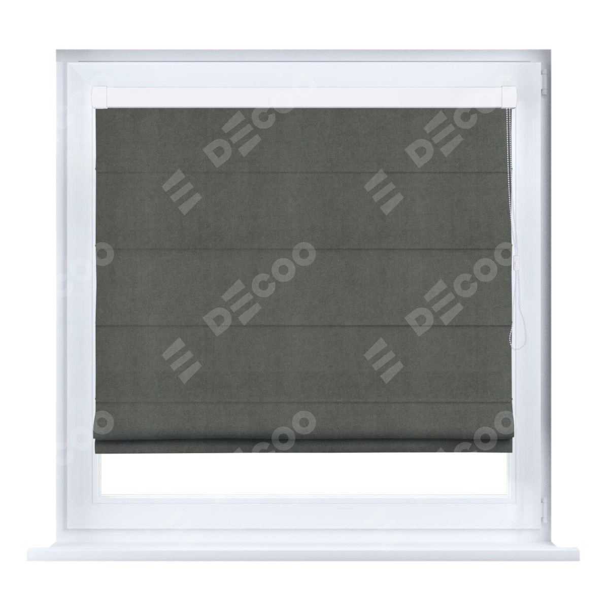 Римская штора производителя «Cortin», устанавливается на створку окна, пошита из ткани вельвет тёмно-серый, артикул 85542. Штора шьётся по индивидуальным размерам, для данного типа римской шторы возможная ширина от 35 до 150 см., высота до 250 см.