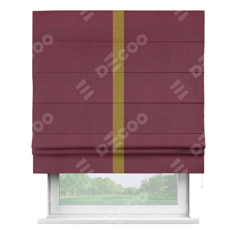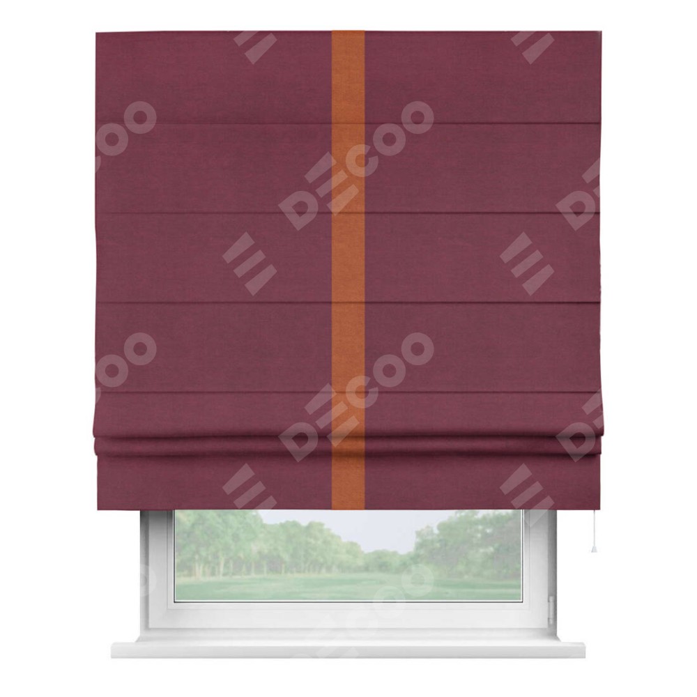 Римская штора «Кортин» с кантом Хайвэй, для проема, ткань вельвет бордовый