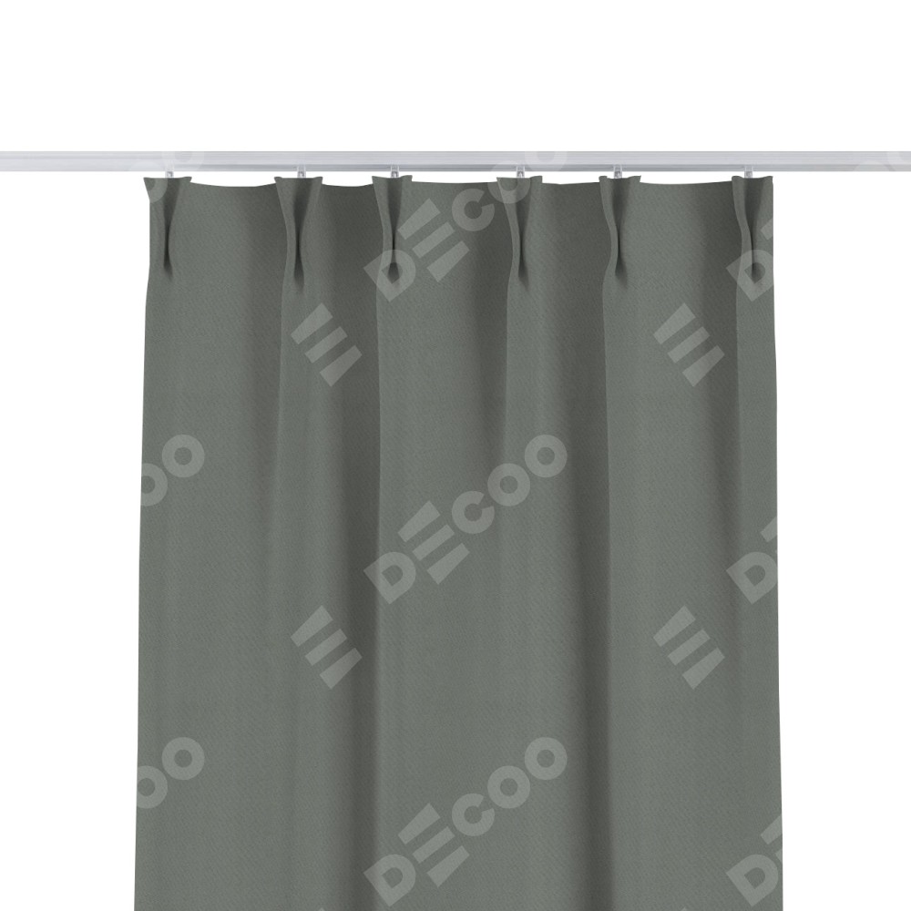 Комплект прямых штор, от производителя «Cortin», пошиты из ткани блэкаут однотонный тёмно-серый, артикул ткани 18077. С изнаночной стороны в верхней части штор пристрачивается шторная лента с декоративными складками «Кустик». Для создания элегантных складок прямые шторы шьются по стандарту с коэффициентом 1:2 (на 100 см. ширины проёма 200 см. ширины ткани).