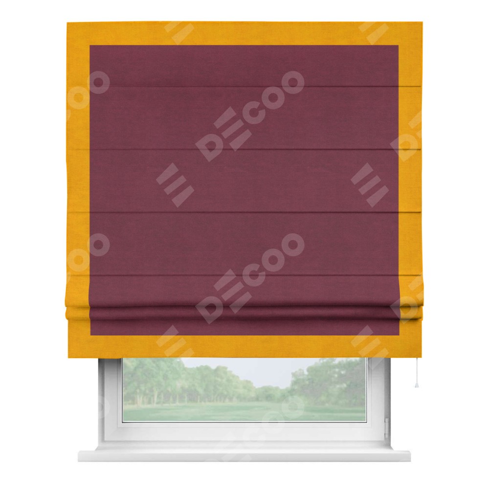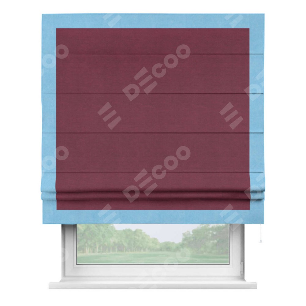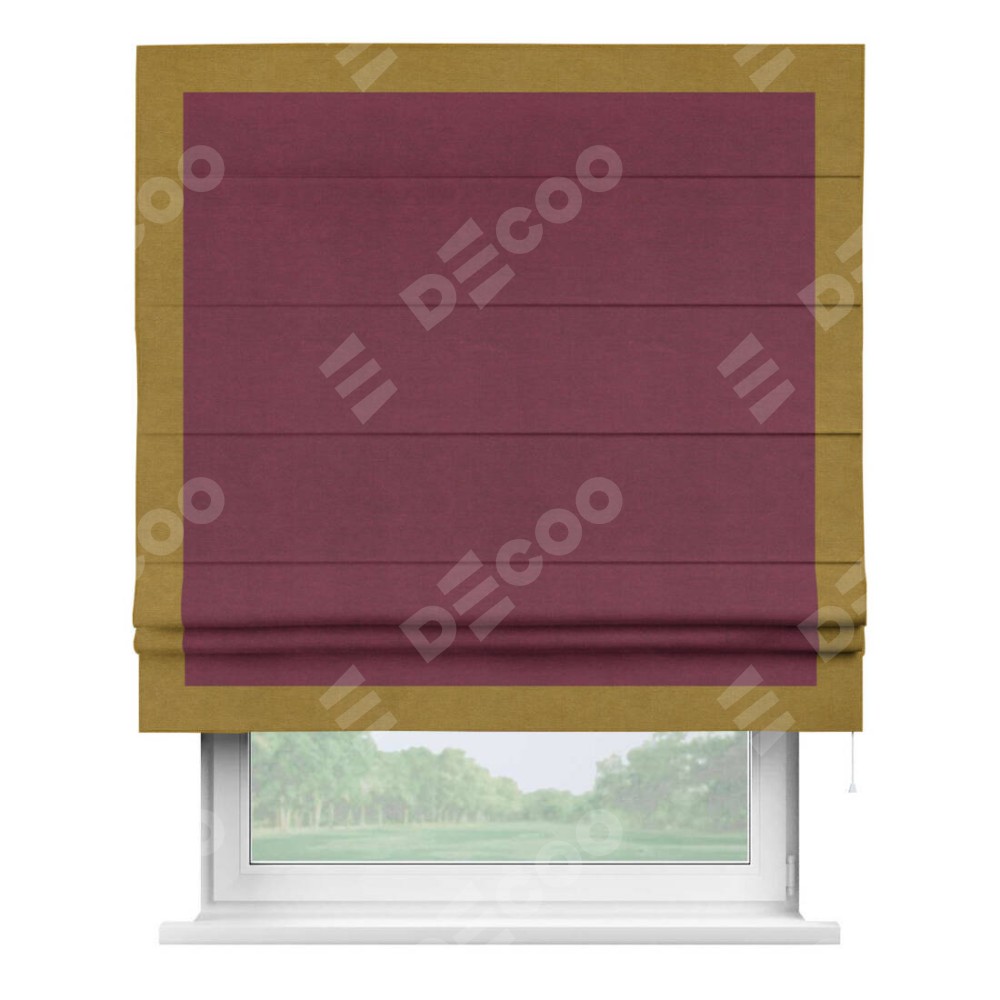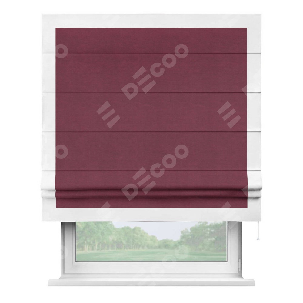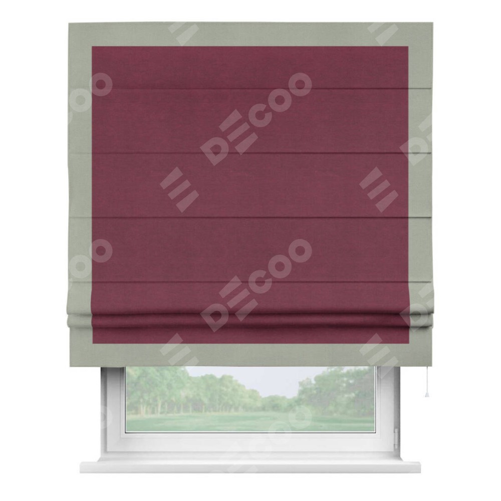 Римская штора «Кортин» с кантом Чесс, для проема, ткань вельвет бордовый