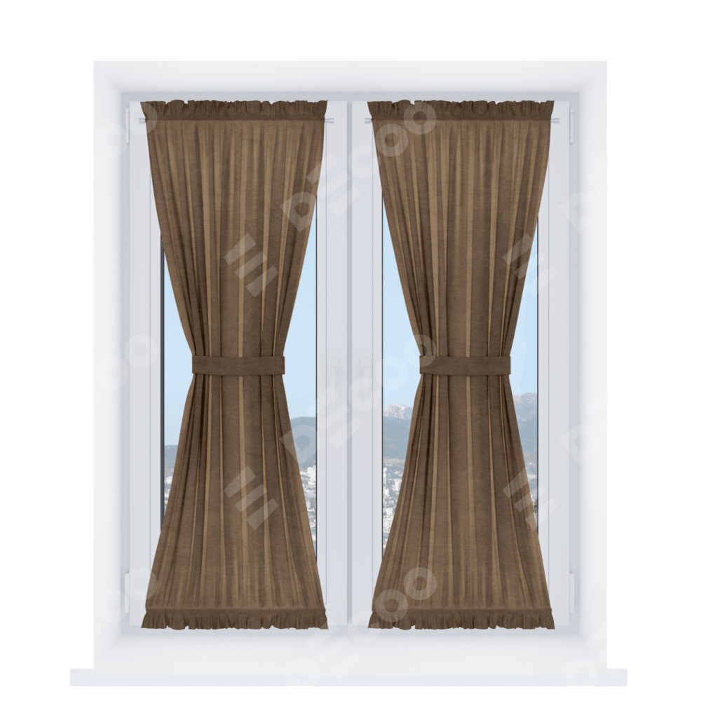 Штора «Песочные часы» производителя «Cortin», используется для створок окон и дверей, пошита из ткани софт однотонный бронзовый, артикул ткани 33099.