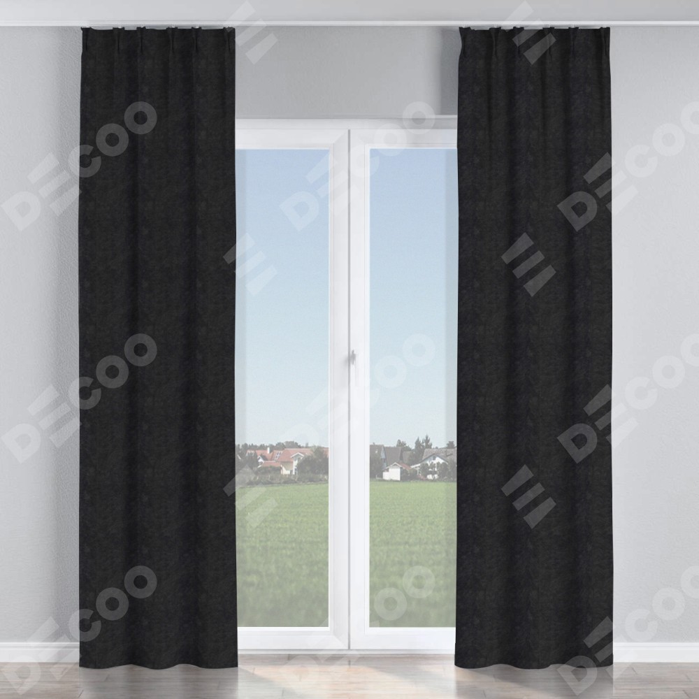 Комплект прямых штор, от производителя «Cortin», пошиты из ткани cotton блэкаут тёмно-серый, артикул ткани 35282. С изнаночной стороны в верхней части штор пристрачивается шторная лента с декоративными складками «Кустик». Для создания элегантных складок прямые шторы шьются по стандарту с коэффициентом 1:2 (на 100 см. ширины проёма 200 см. ширины ткани).
