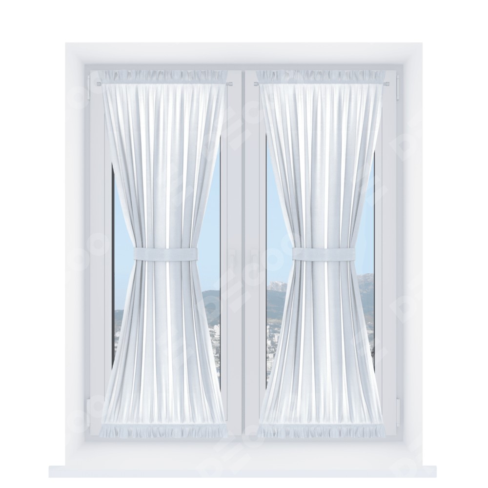 Штора «Песочные часы» производителя «Cortin», используется для створок окон и дверей, пошита из ткани блэкаут однотонный дымчато-белый, артикул ткани 101.