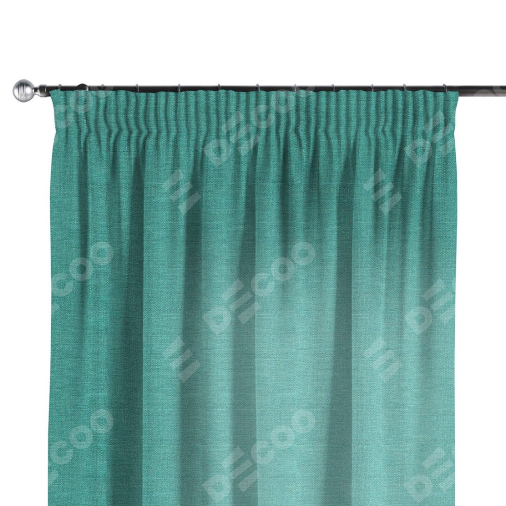 Комплект прямых штор, от производителя «Cortin», пошиты из ткани лён изумрудный, артикул ткани 85908. С изнаночной стороны в верхней части штор пристрачивается шторная лента с декоративными складками «Карандаш». Для создания элегантных складок прямые шторы шьются по стандарту с коэффициентом 1:2 (на 100 см. ширины проёма 200 см. ширины ткани).