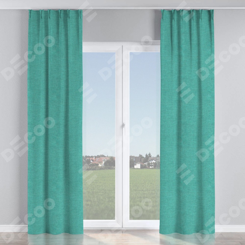 Комплект прямых штор, от производителя «Cortin», пошиты из ткани лён изумрудный, артикул ткани 85908. С изнаночной стороны в верхней части штор пристрачивается шторная лента с декоративными складками «Кустик». Для создания элегантных складок прямые шторы шьются по стандарту с коэффициентом 1:2 (на 100 см. ширины проёма 200 см. ширины ткани).