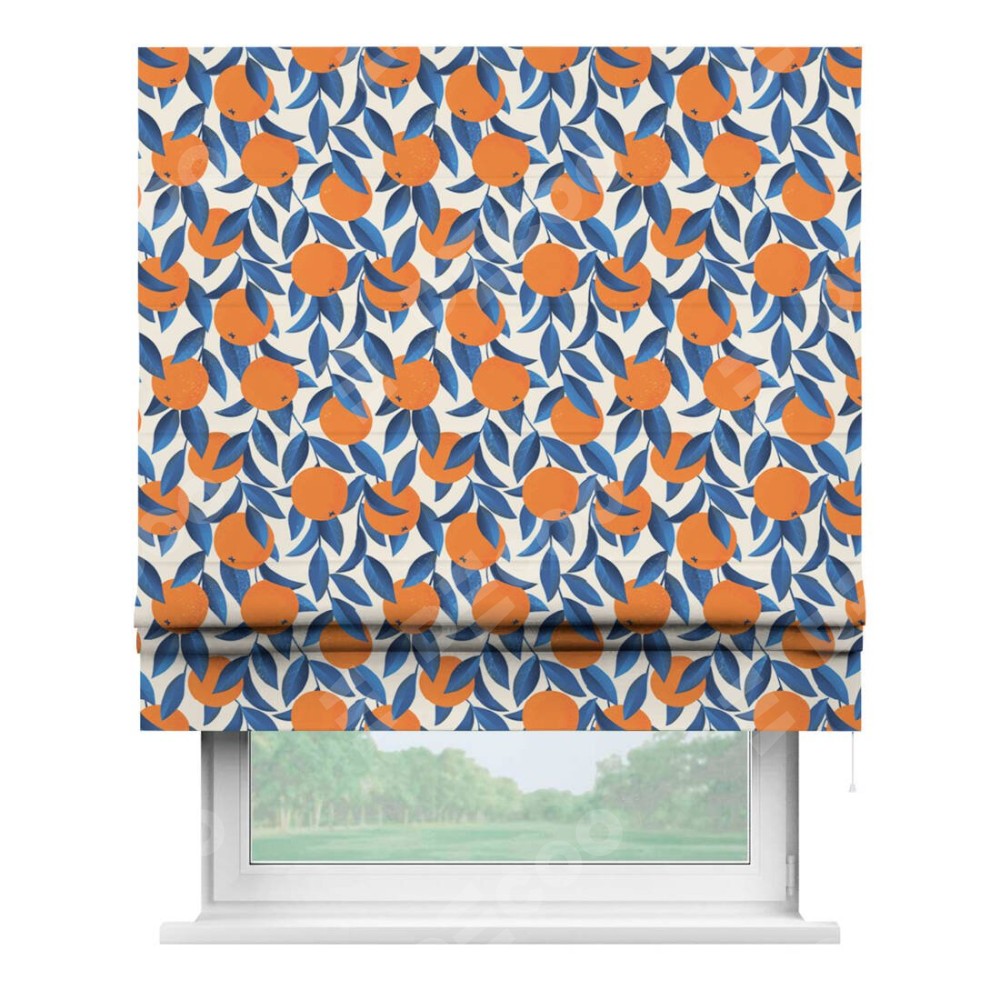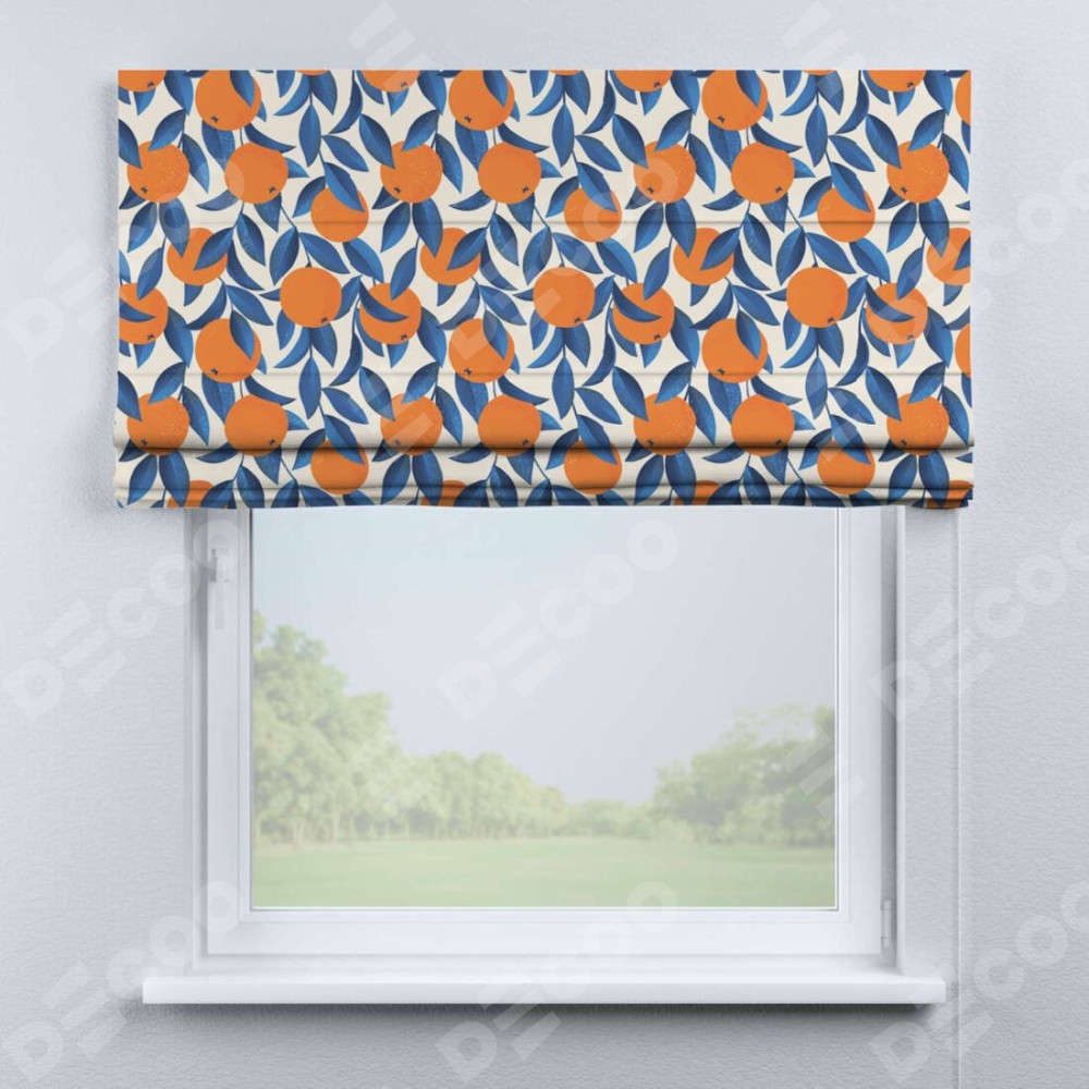 Римская штора производителя «Cortin», используется для проёма, пошита из ткани блэкаут с нанесением сублимационной печати «Апельсиновое настроение». Имеет универсальный механизм и подходит для монтажа: на потолок, на стену и в нишу.
