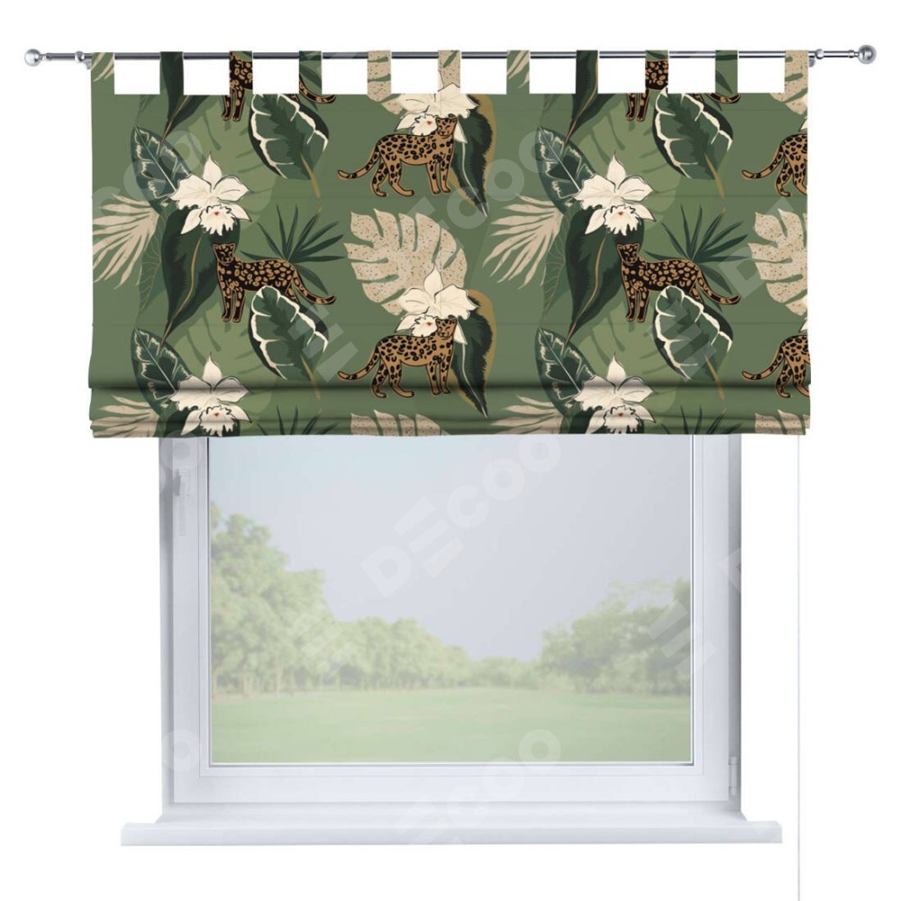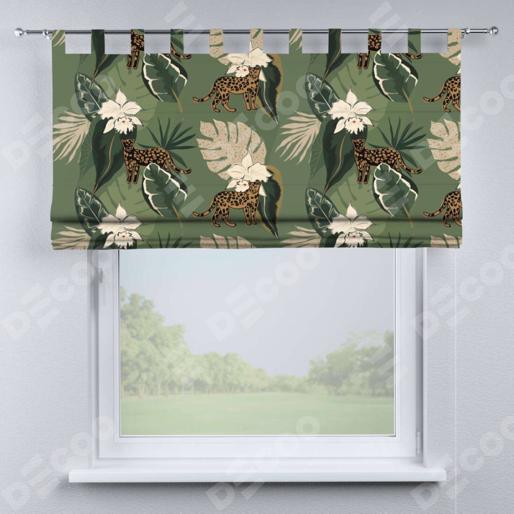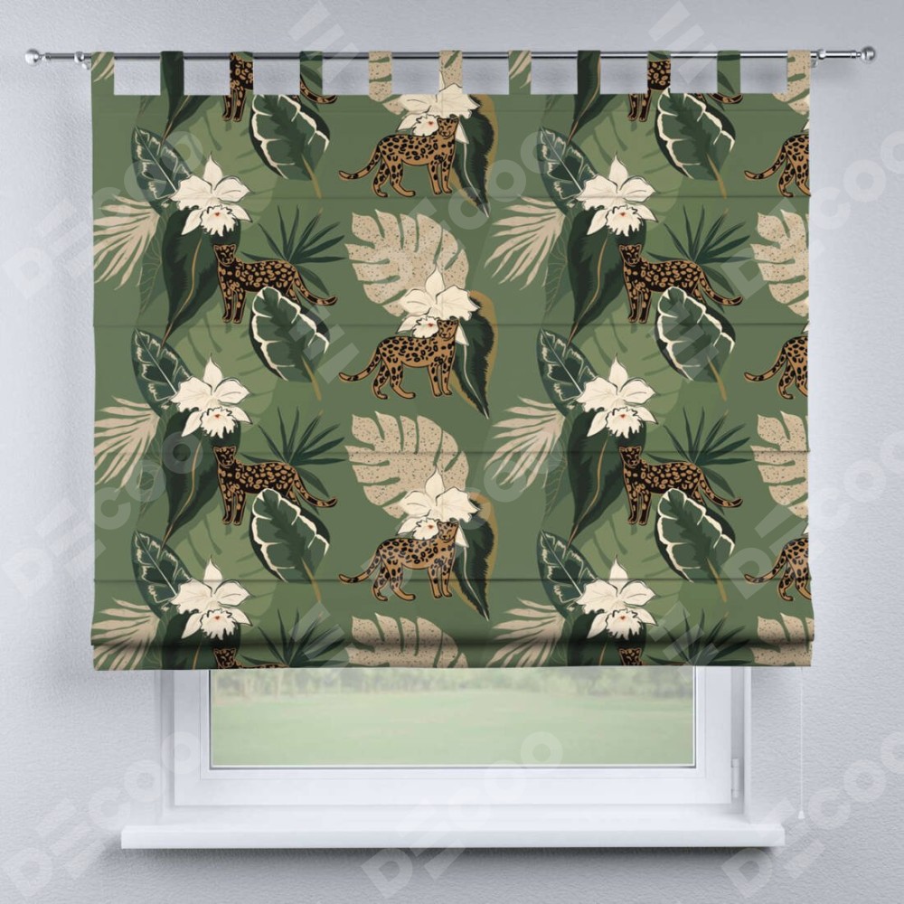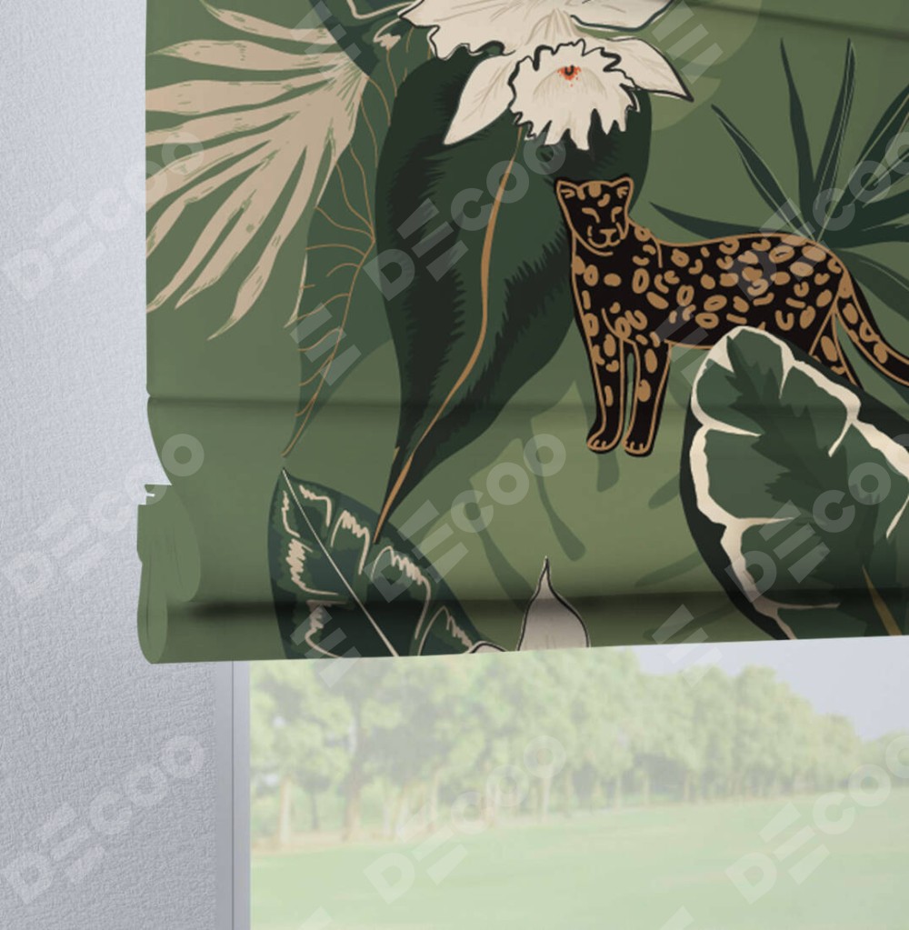 Римская штора производителя «Cortin», используется для проёма, пошита из ткани блэкаут с нанесением сублимационной печати «В тропическом лесу». Данная модель пошита на петлях, комплектуется на выбор круглым карнизом и подходит для монтажа на стену. Римская штора на петлях имеет простую систему регулировки высоты, отличительным преимуществом данной модели является простой способ монтажа. Достаточно повесить ее на трубу и штора готова!