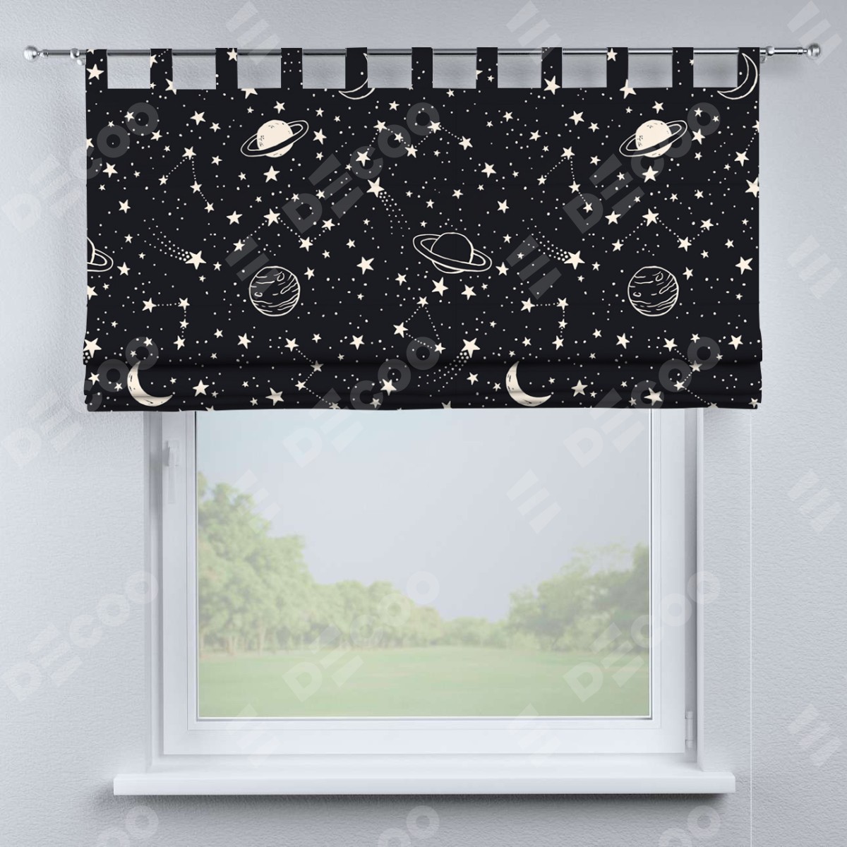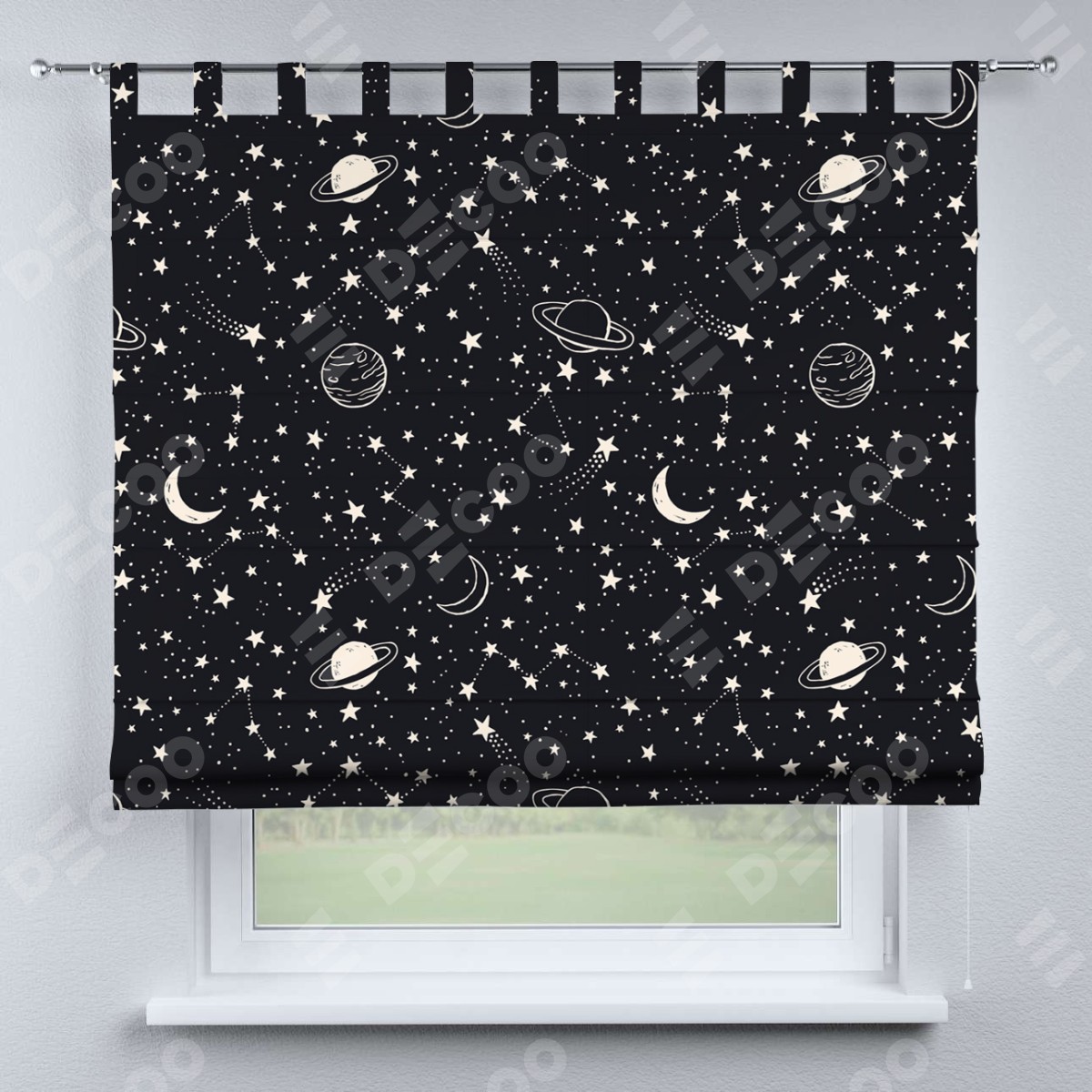 Римская штора производителя «Cortin», используется для проёма, пошита из ткани блэкаут с нанесением сублимационной печати «Глубокий космос». Данная модель пошита на петлях, комплектуется на выбор круглым карнизом и подходит для монтажа на стену. Римская штора на петлях имеет простую систему регулировки высоты, отличительным преимуществом данной модели является простой способ монтажа. Достаточно повесить ее на трубу и штора готова!