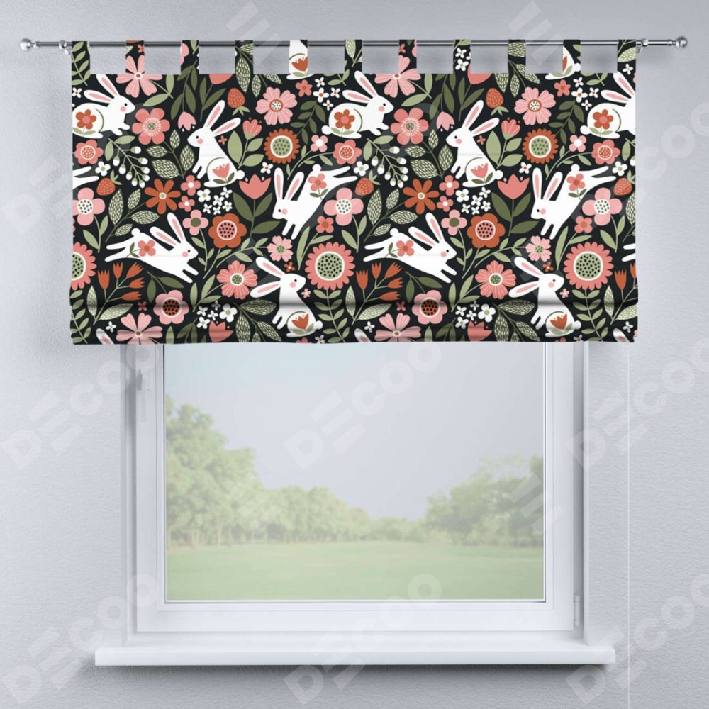 Римская штора производителя «Cortin», используется для проёма, пошита из ткани блэкаут с нанесением сублимационной печати «Зайчики в цветнике». Данная модель пошита на петлях, комплектуется на выбор круглым карнизом и подходит для монтажа на стену. Римская штора на петлях имеет простую систему регулировки высоты, отличительным преимуществом данной модели является простой способ монтажа. Достаточно повесить ее на трубу и штора готова!