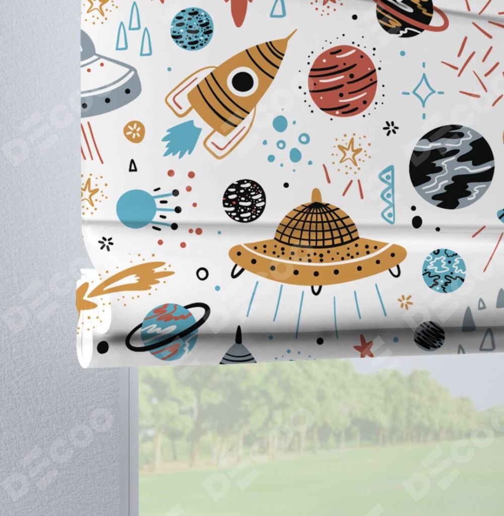 Римская штора на петлях «Космическое приключение»