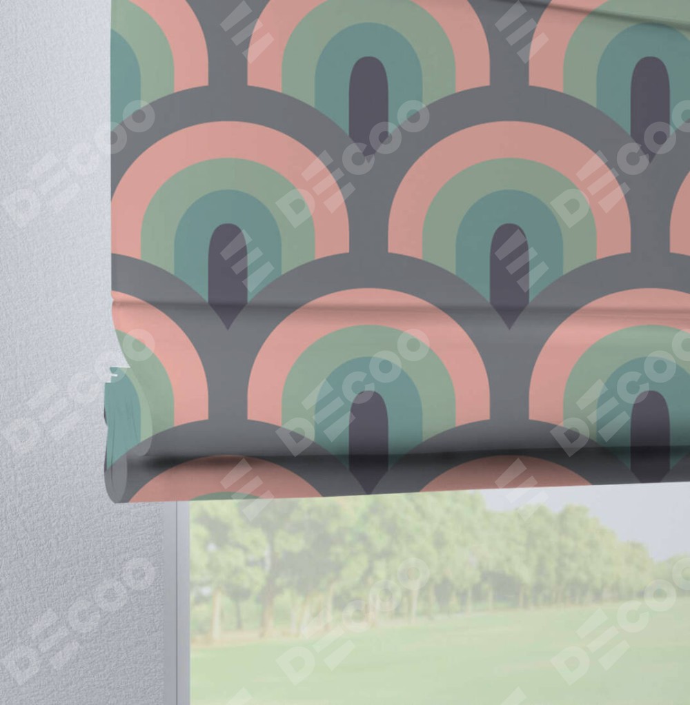 Римская штора производителя «Cortin», используется для проёма, пошита из ткани блэкаут с нанесением сублимационной печати «Ретро орнамент». Данная модель пошита на петлях, комплектуется на выбор круглым карнизом и подходит для монтажа на стену. Римская штора на петлях имеет простую систему регулировки высоты, отличительным преимуществом данной модели является простой способ монтажа. Достаточно повесить ее на трубу и штора готова!