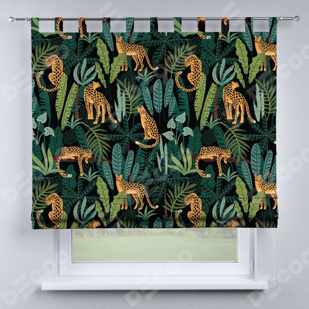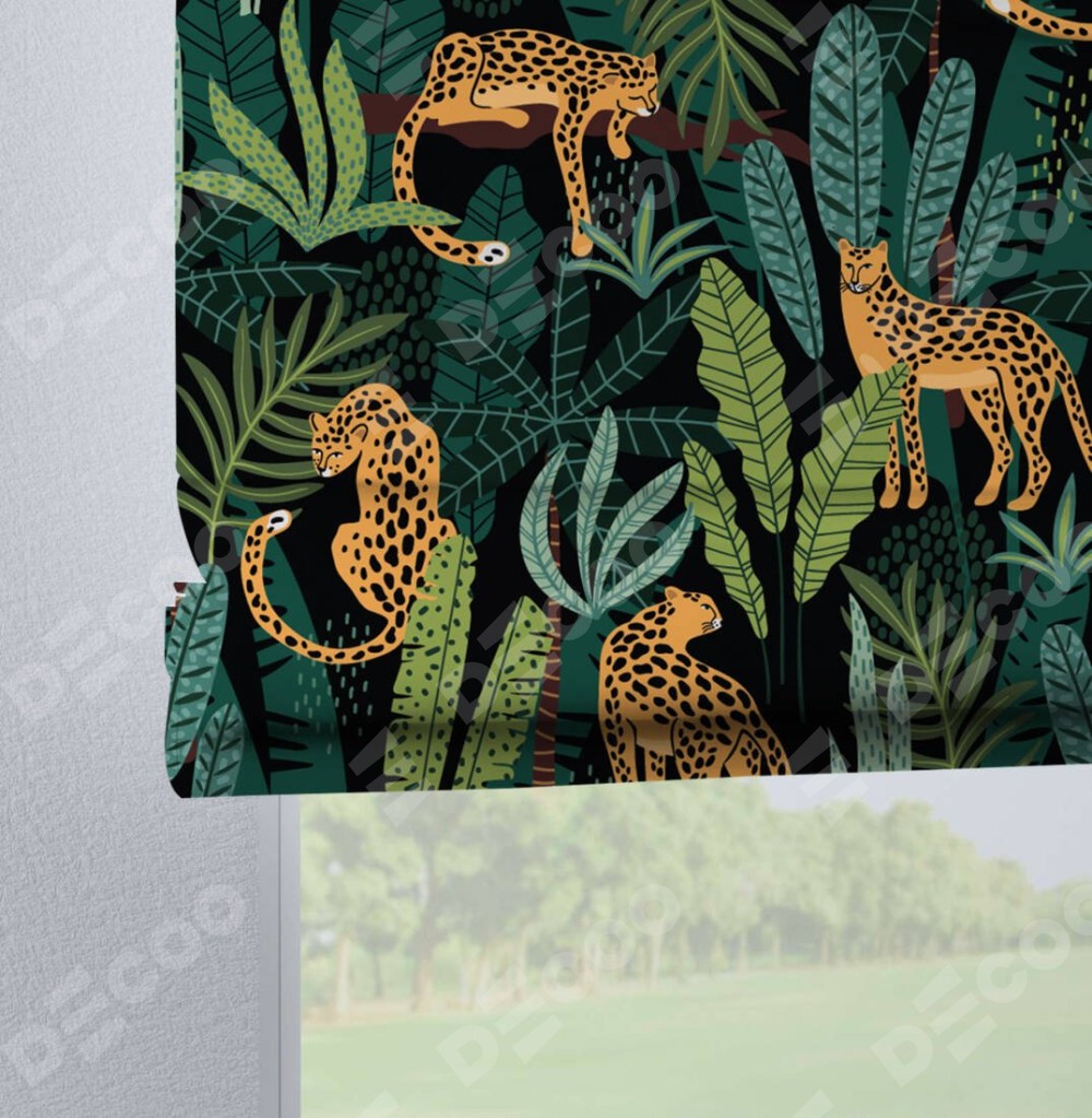 Римская штора на петлях «Леопарды в джунглях»