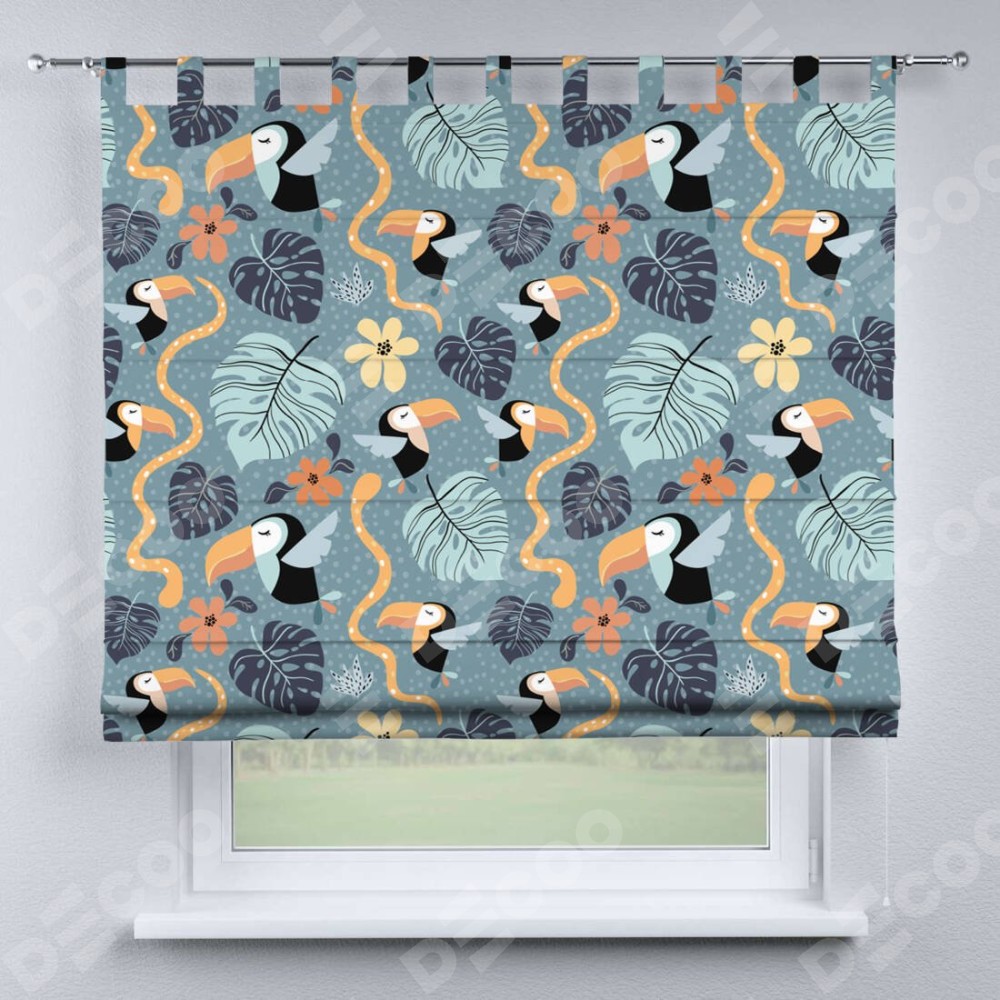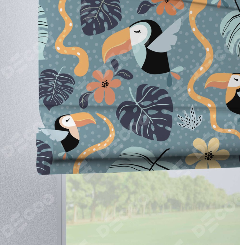 Римская штора производителя «Cortin», используется для проёма, пошита из ткани блэкаут с нанесением сублимационной печати «Экзотические птицы». Данная модель пошита на петлях, комплектуется на выбор круглым карнизом и подходит для монтажа на стену. Римская штора на петлях имеет простую систему регулировки высоты, отличительным преимуществом данной модели является простой способ монтажа. Достаточно повесить ее на трубу и штора готова!