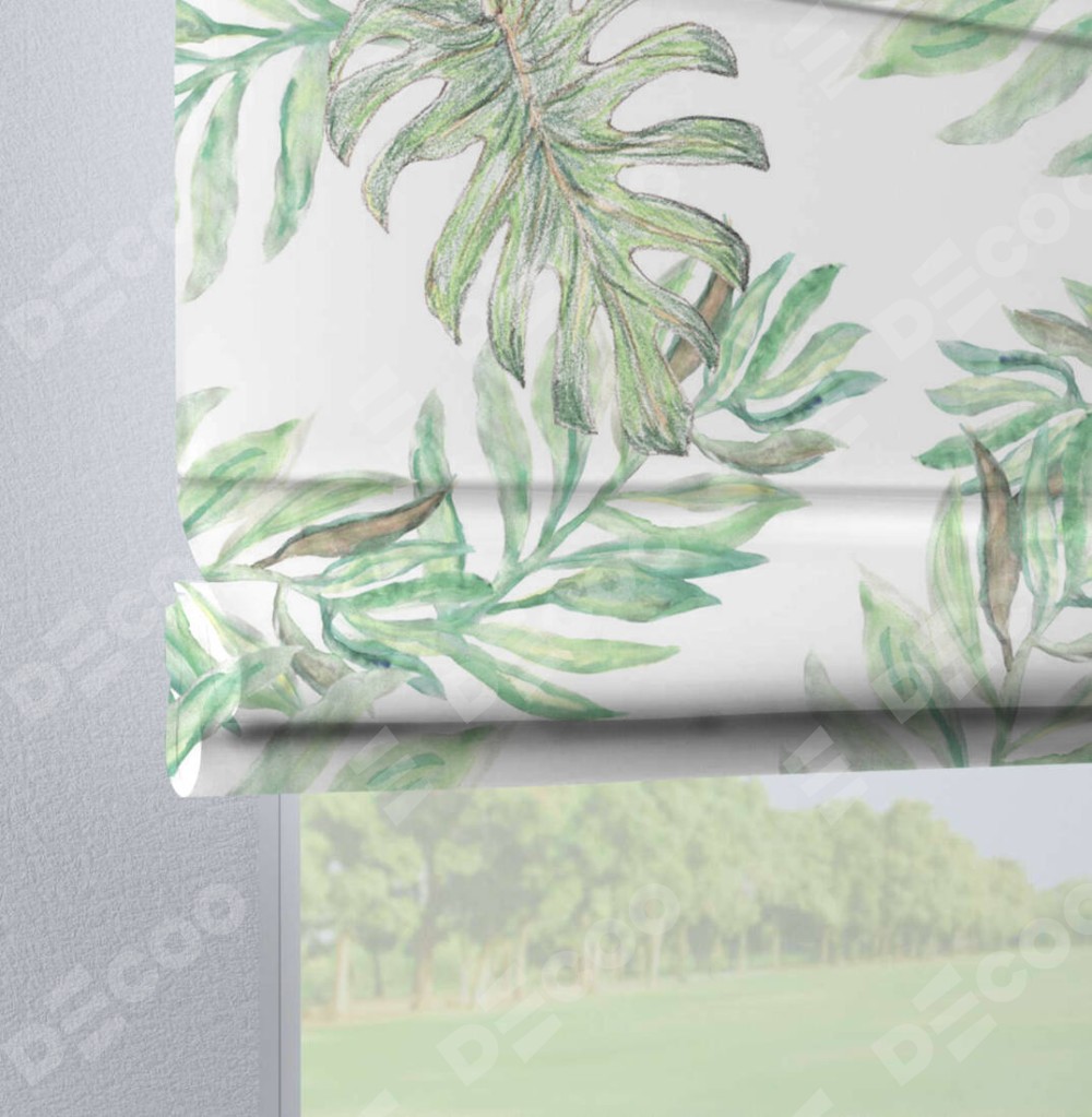 Римская штора на петлях «Листья монстеры»