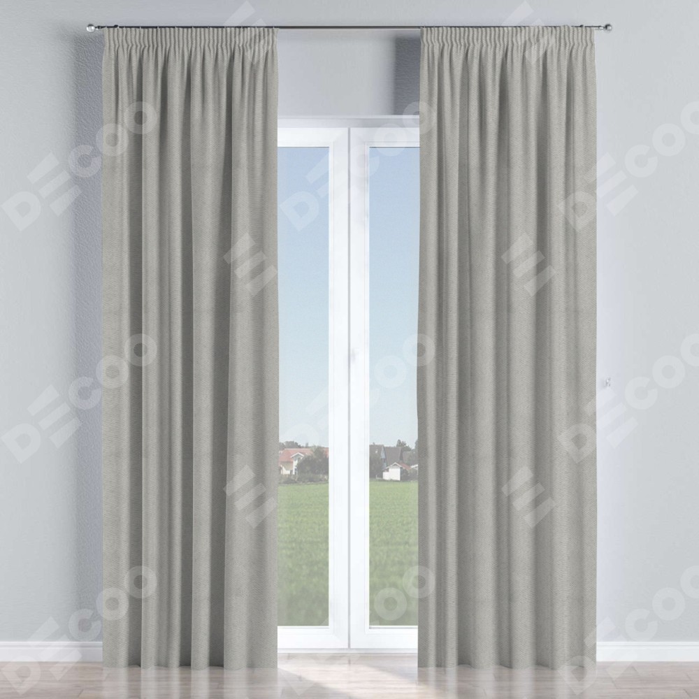 Комплект прямых штор, от производителя «Cortin», пошиты из ткани блэкаут с блеском темно-серый, артикул ткани 34634. С изнаночной стороны в верхней части штор пристрачивается шторная лента с декоративными складками «Карандаш». Обратная сторона основного материала черного цвета, что обеспечивает необходимую светонепроницаемость. Для создания элегантных складок прямые шторы шьются по стандарту с коэффициентом 1:2 (на 100 см. ширины проёма 200 см. ширины ткани).