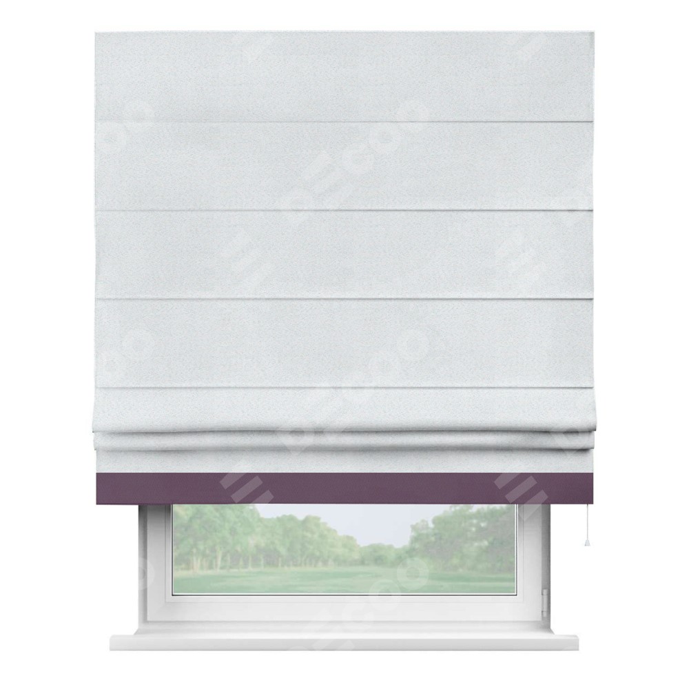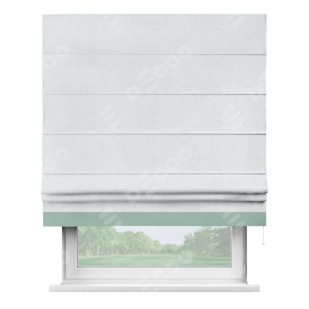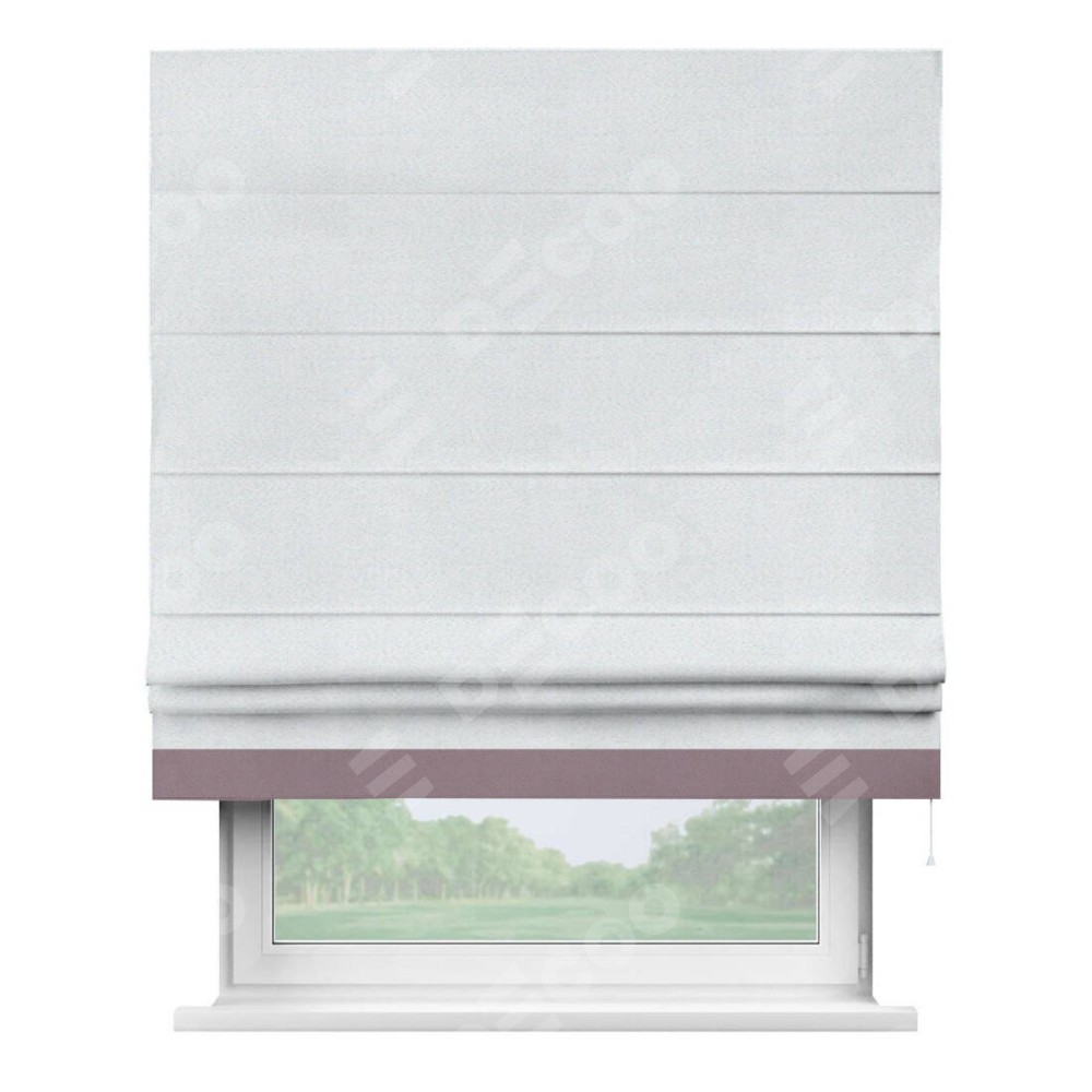 Римская штора производителя «Cortin», используется для проёма, пошита из ткани блэкаут однотонный дымчато-белый, артикул ткани 101. Отделка шторы кантом «Джестер», ткань для канта используется из блэкаута однотонного разной расцветки на выбор. Имеет универсальный механизм и подходит для монтажа: на потолок, на стену и в нишу.