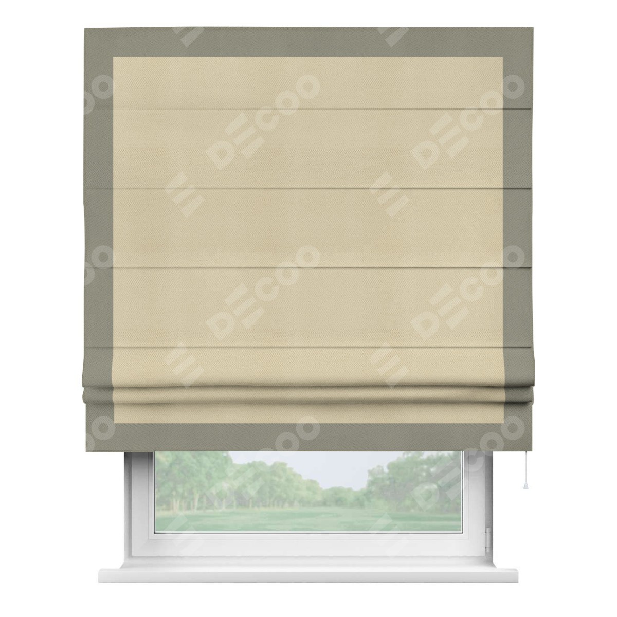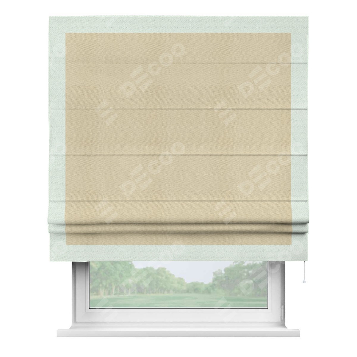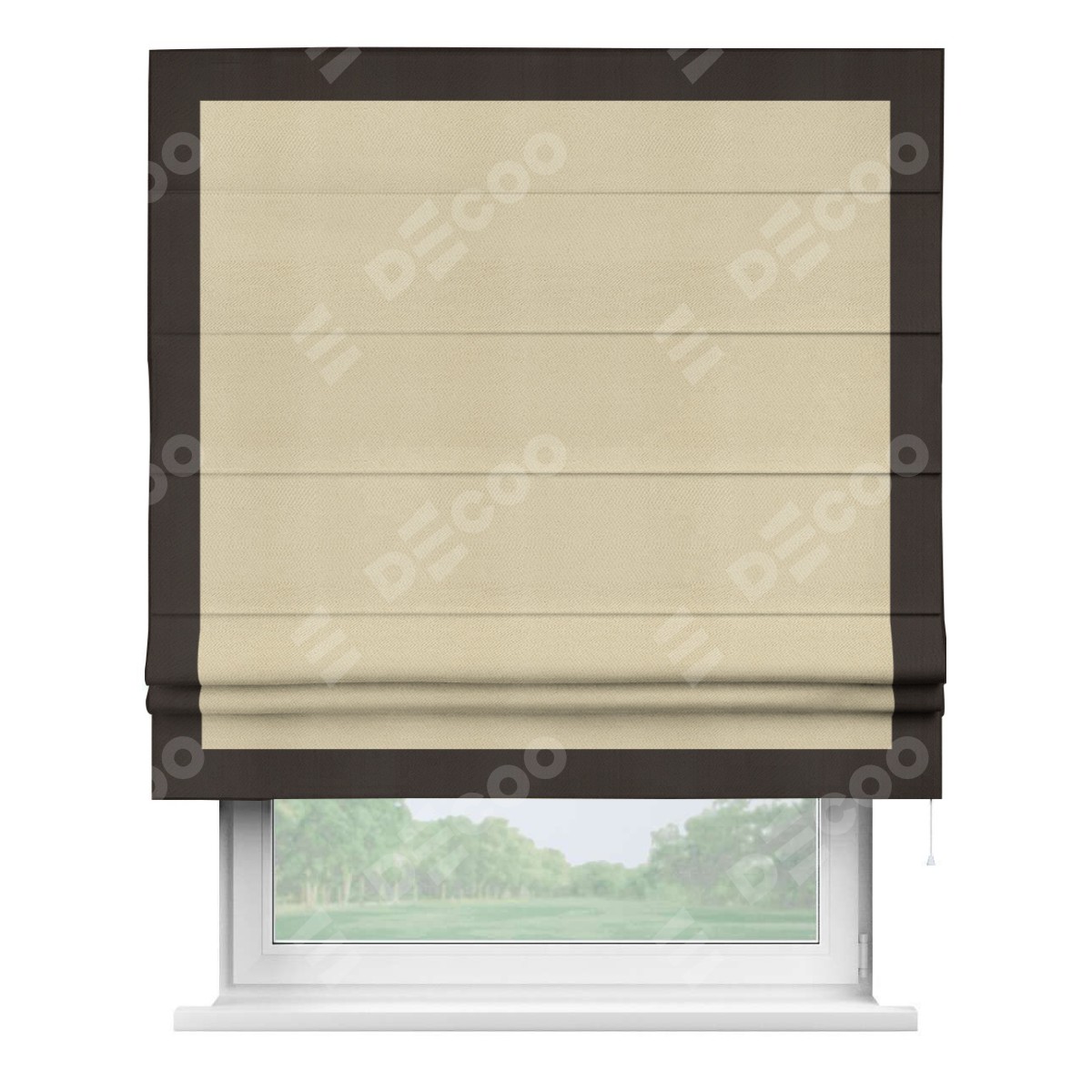 Римская штора производителя «Cortin», используется для проёма, пошита из ткани блэкаут однотонный милано латте, артикул ткани 05. Отделка шторы кантом «Чесс», ткань для канта используется из блэкаута однотонного разной расцветки на выбор. Имеет универсальный механизм и подходит для монтажа: на потолок, на стену и в нишу.