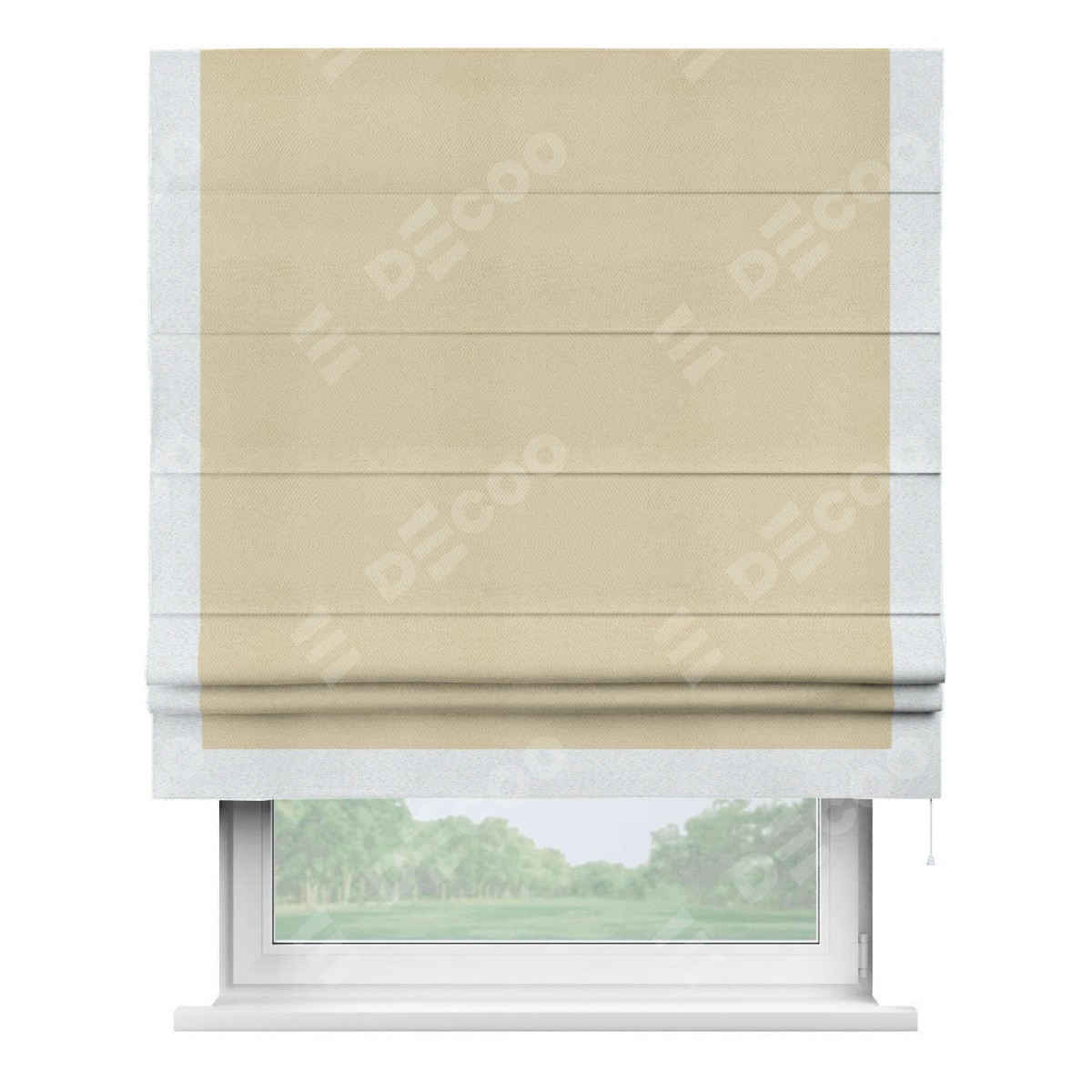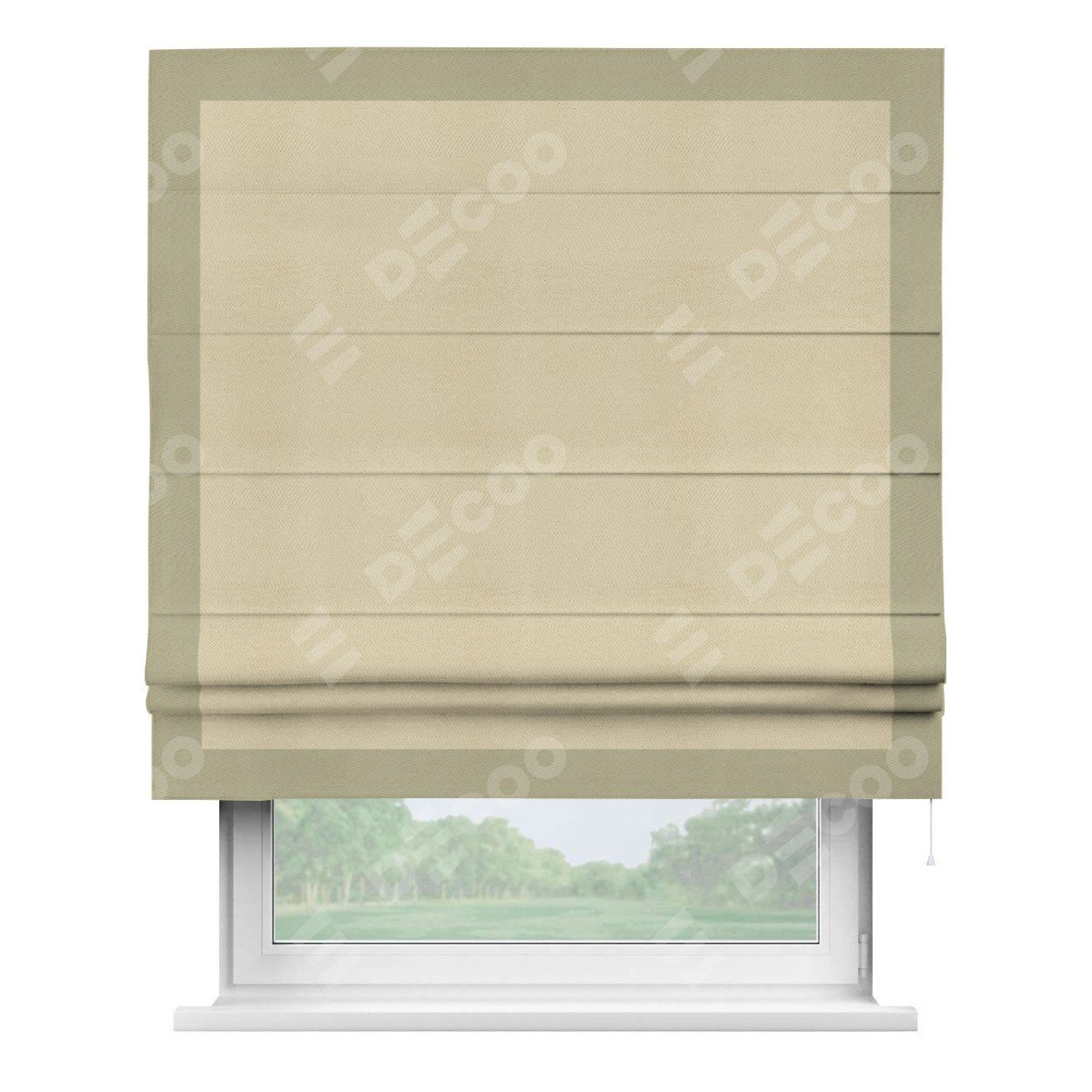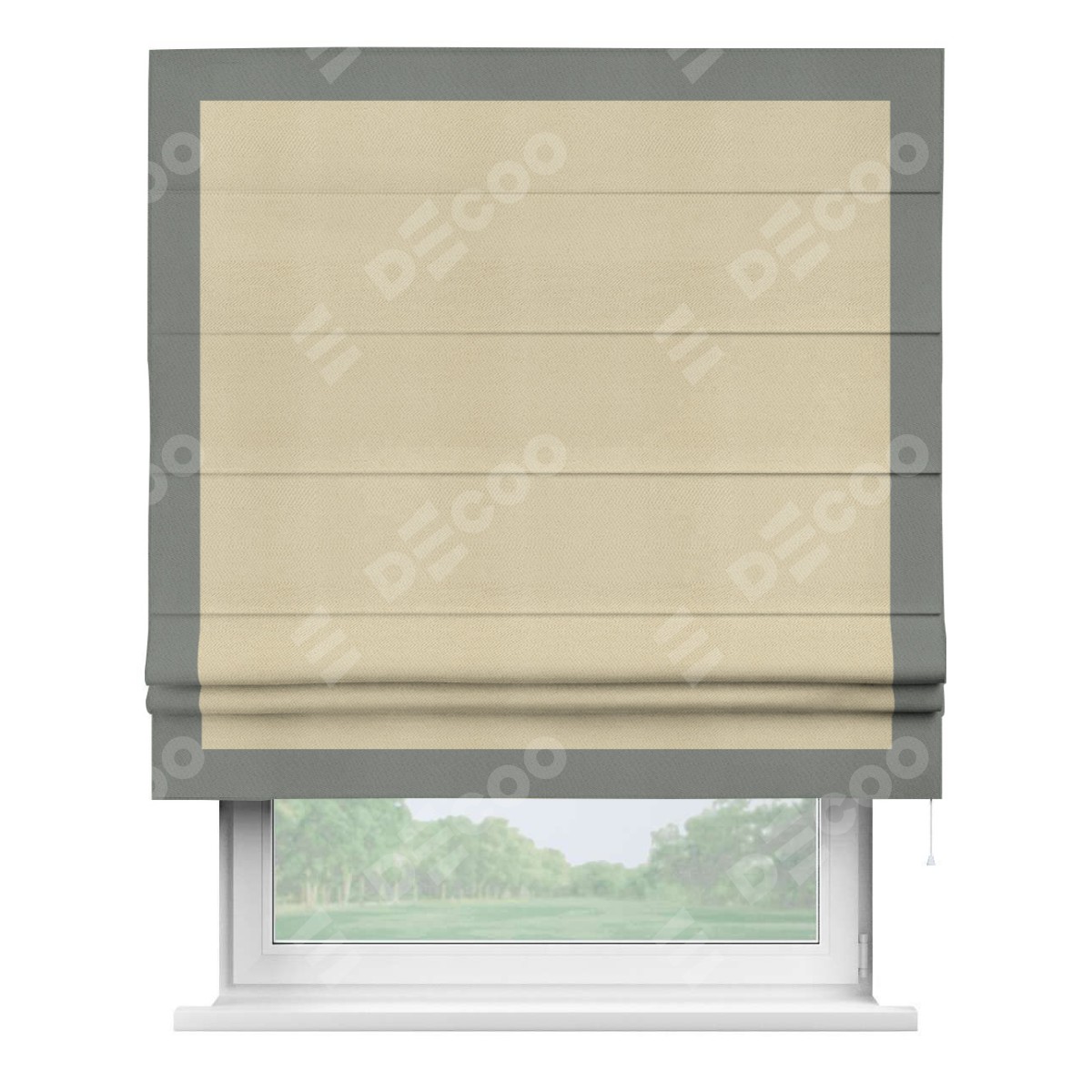 Римская штора производителя «Cortin», используется для проёма, пошита из ткани блэкаут однотонный милано латте, артикул ткани 05. Отделка шторы кантом «Чесс», ткань для канта используется из блэкаута однотонного разной расцветки на выбор. Имеет универсальный механизм и подходит для монтажа: на потолок, на стену и в нишу.