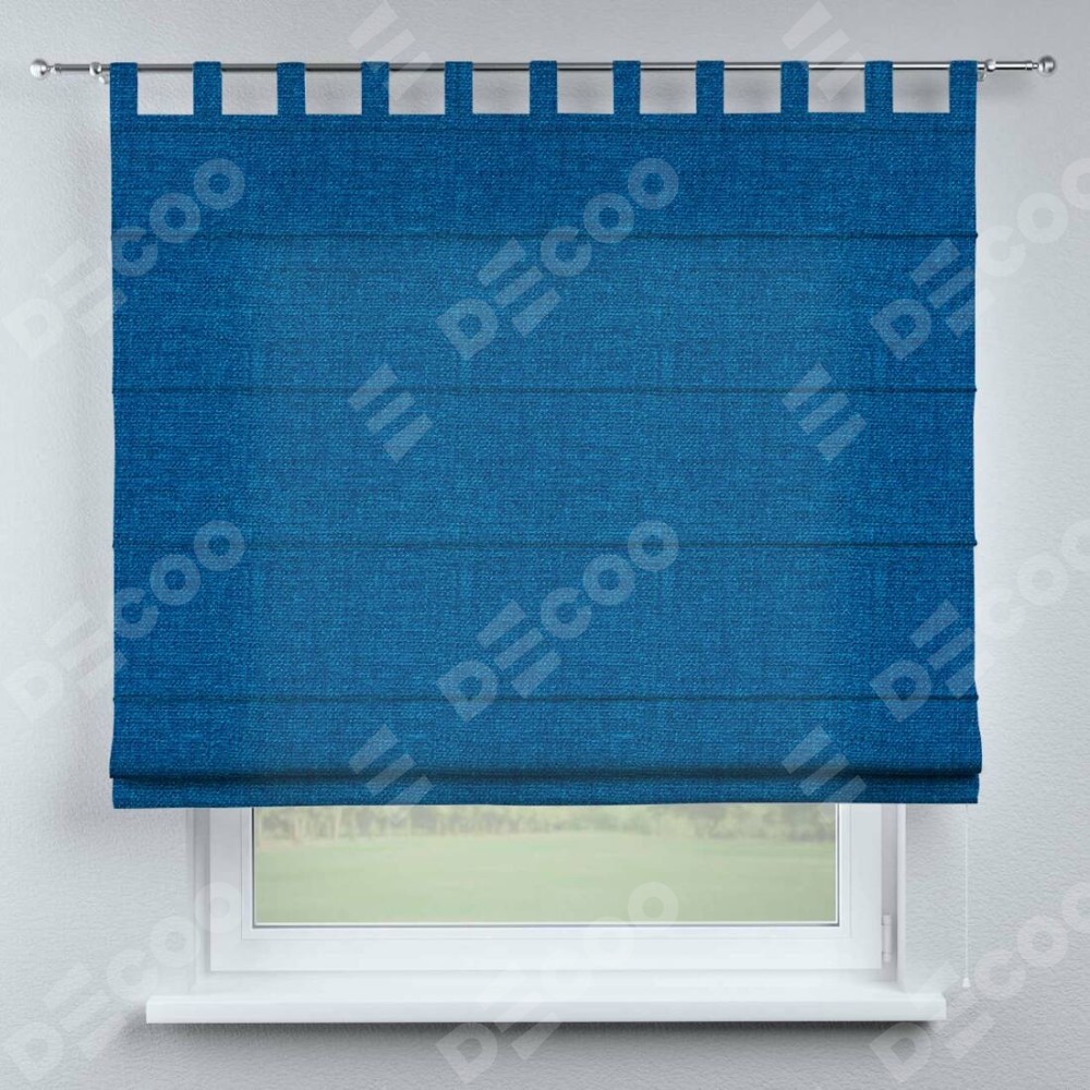 Римская штора производителя «Cortin», используется для проёма, пошита из ткани лён синий, артикул ткани 63742. Данная модель пошита на петлях, комплектуется на выбор круглым карнизом и подходит для монтажа на стену. Римская штора на петлях имеет простую систему регулировки высоты, отличительным преимуществом данной модели является простой способ монтажа. Достаточно повесить ее на трубу и штора готова!