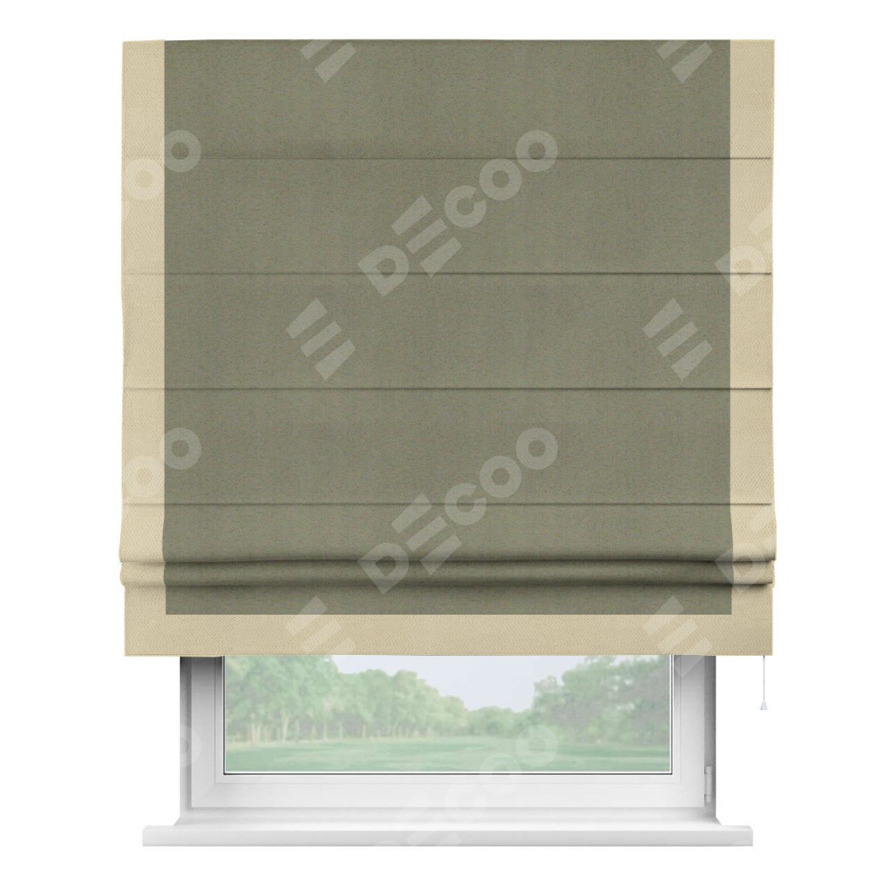Римская штора «Кортин» с кантом Виктория, для проема, ткань блэкаут однотонный серо-коричневый