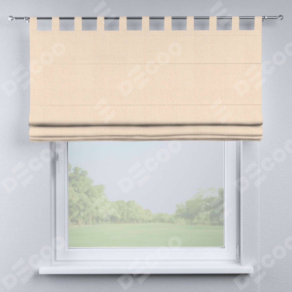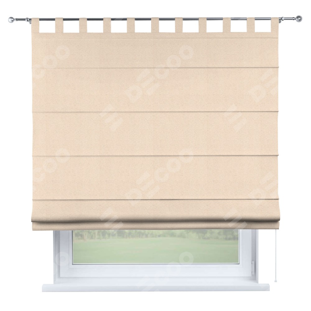 Римская штора производителя «Cortin», используется для проёма, пошита из ткани блэкаут тиснение с блеском розовая пудра, артикул ткани 34632. Изнаночная сторона материала черного цвета, что обеспечивает необходимую светонепроницаемость. Данная модель пошита на петлях, комплектуется на выбор круглым карнизом и подходит для монтажа на стену. Римская штора на петлях имеет простую систему регулировки высоты, отличительным преимуществом данной модели является простой способ монтажа. Достаточно повесить ее на трубу и штора готова!