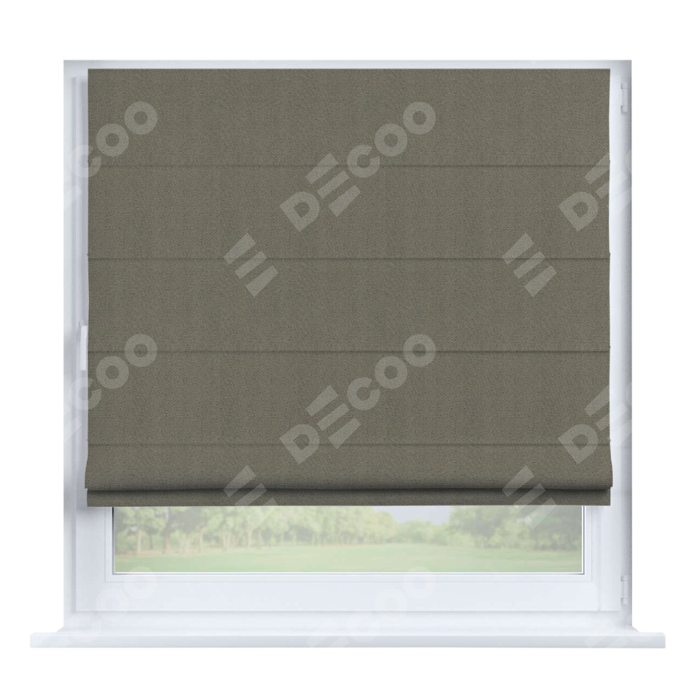 Римская штора производителя «Cortin», устанавливается на створку окна, пошита из ткани блэкаут тиснение с блеском графитовый, артикул 34648. Изнаночная сторона материала черного цвета, что обеспечивает необходимую светонепроницаемость. Штора шьётся по индивидуальным размерам, для данного типа римской шторы возможная ширина от 35 до 150 см., высота до 250 см.