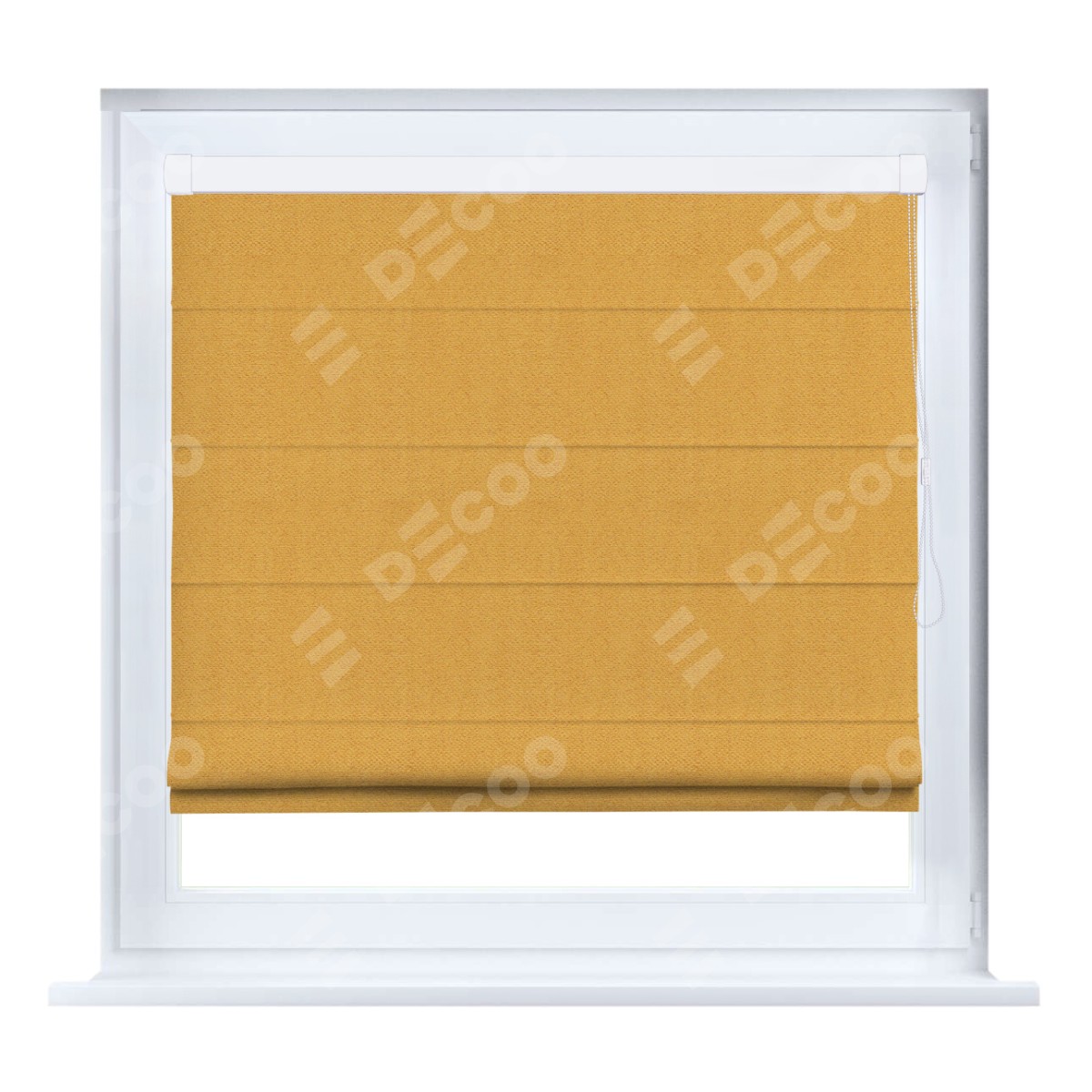 Римская штора кассетного типа, производителя «Cortin», устанавливается только на пластиковые окна и прилегает к стеклопакету, пошита из ткани из ткани блэкаут тиснение с блеском золотой, артикул 34626. Изнаночная сторона материала черного цвета, что обеспечивает необходимую светонепроницаемость.