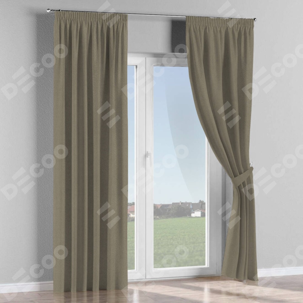 Комплект прямых штор, от производителя «Cortin», пошиты из ткани блэкаут с блеском графитовый, артикул ткани 34648. С изнаночной стороны в верхней части штор пристрачивается шторная лента с декоративными складками «Карандаш». Обратная сторона основного материала черного цвета, что обеспечивает необходимую светонепроницаемость. Для создания элегантных складок прямые шторы шьются по стандарту с коэффициентом 1:2 (на 100 см. ширины проёма 200 см. ширины ткани).