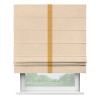 Римская штора производителя «Cortin», используется для проёма, пошита из ткани блэкаут с блеском бежевый, артикул 34627. Отделка шторы кантом «Хайвэй», ткань для канта используется из блэкаута с блеском разной расцветки на выбор. Изнаночная сторона материала черного цвета, что обеспечивает необходимую светонепроницаемость. Имеет универсальный механизм и подходит для монтажа: на потолок, на стену и в нишу.