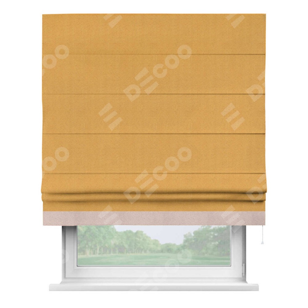 Римская штора «Кортин» с кантом Джестер, для проема, ткань блэкаут с блеском золотой