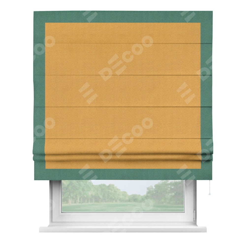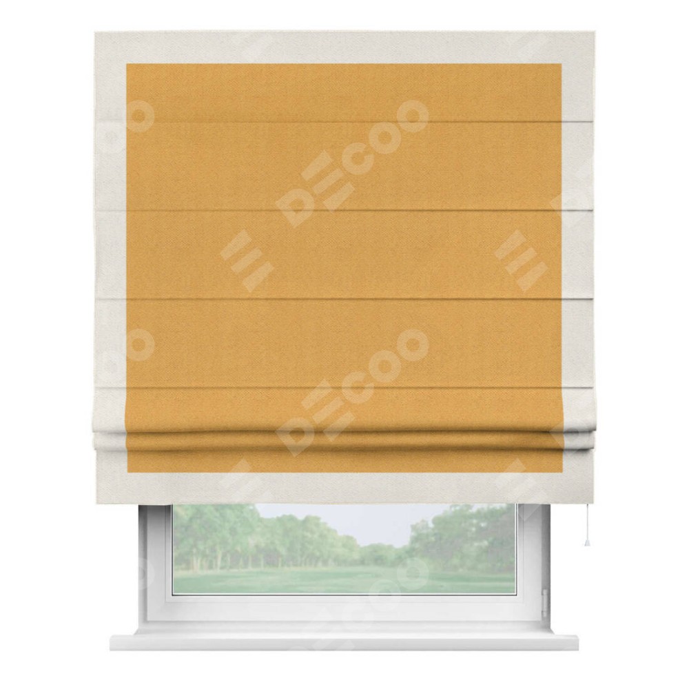 Римская штора «Кортин» с кантом Чесс, для проема, ткань блэкаут с блеском золотой