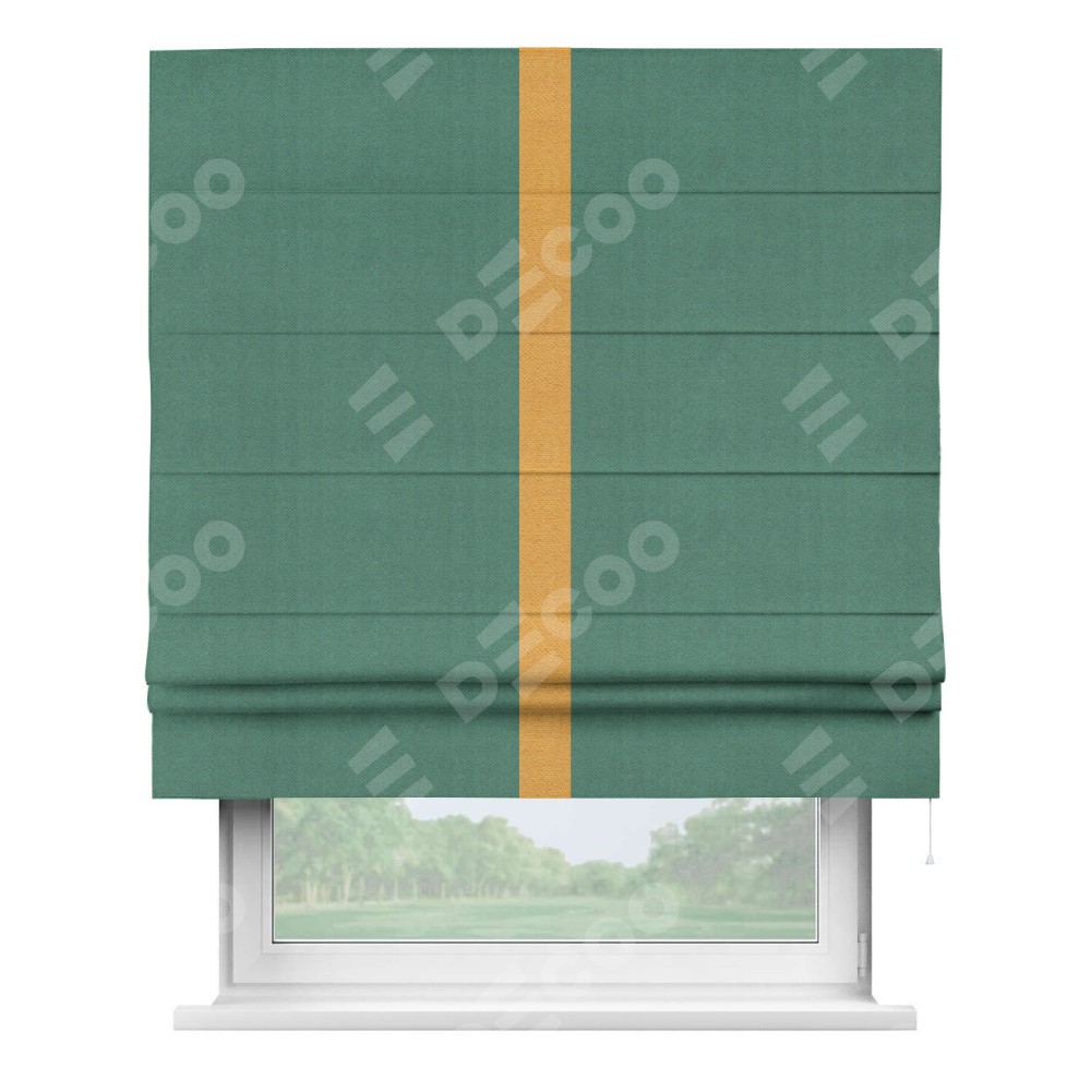 Римская штора «Кортин» с кантом Хайвэй, для проема, ткань блэкаут с блеском изумрудный