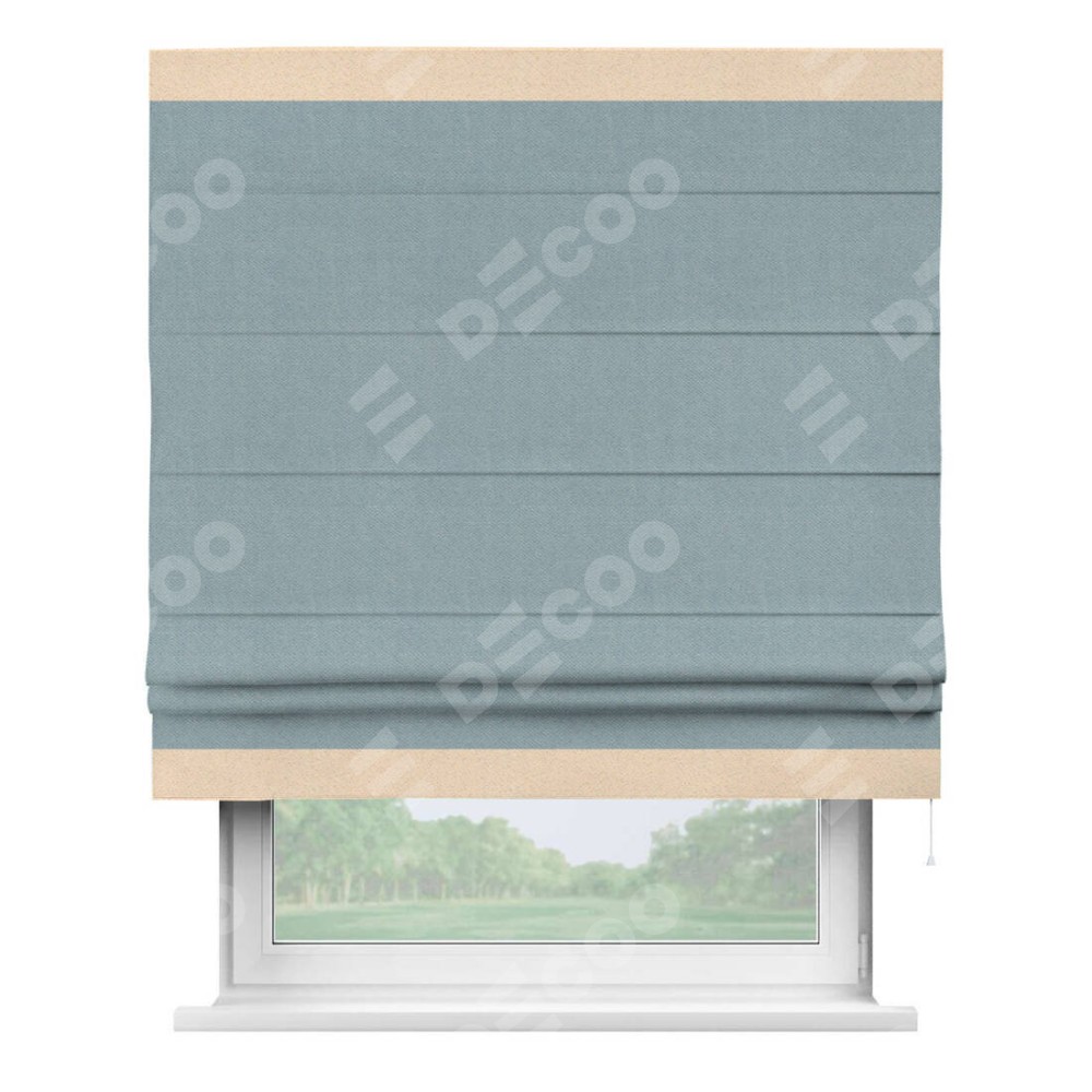 Римская штора «Кортин» с кантом Горизонт, для проема, ткань блэкаут с блеском синий
