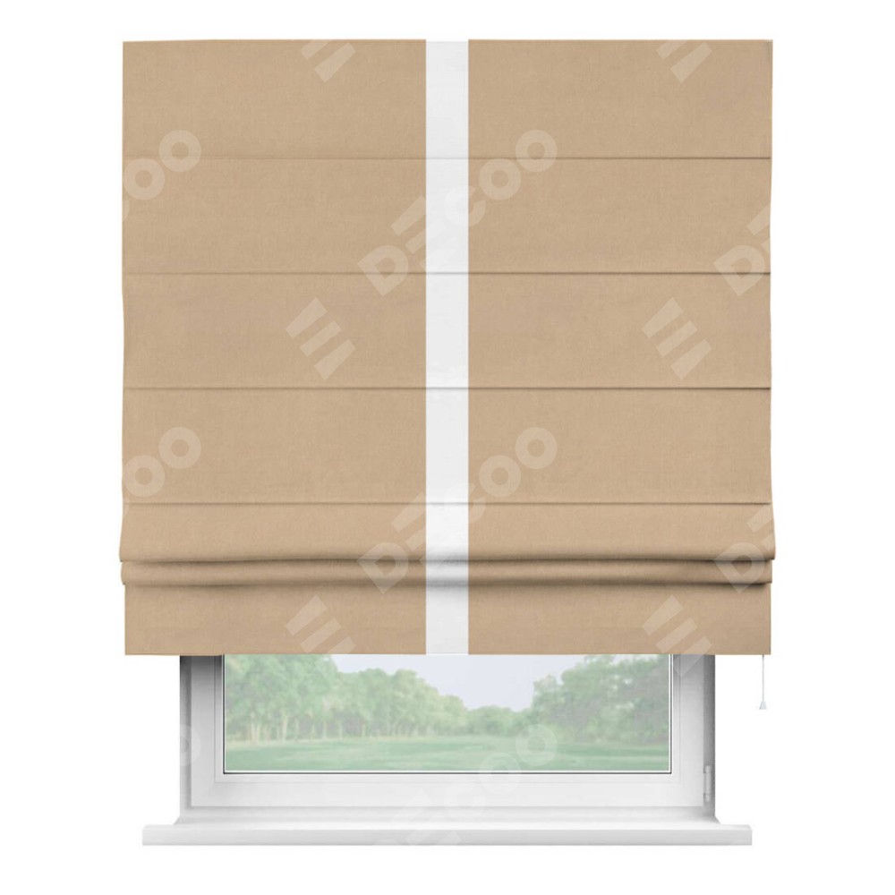 Римская штора «Кортин» с кантом Хайвэй, для проема, ткань вельвет песочный