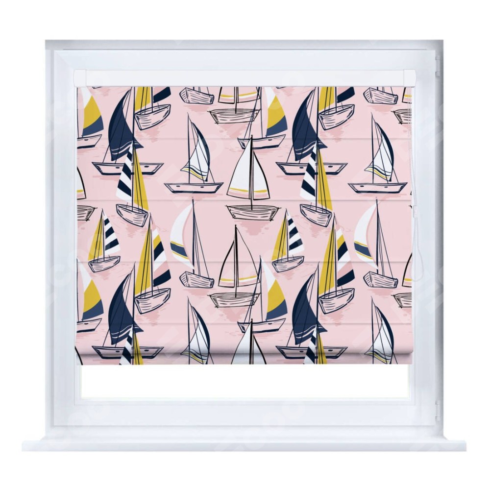 Римская штора производителя «Cortin», устанавливается на створку окна, пошита из ткани блэкаут с нанесением сублимационной печати «Парусная регата». Штора шьётся по индивидуальным размерам, для данного типа римской шторы возможная ширина от 35 до 150 см., высота до 250 см.