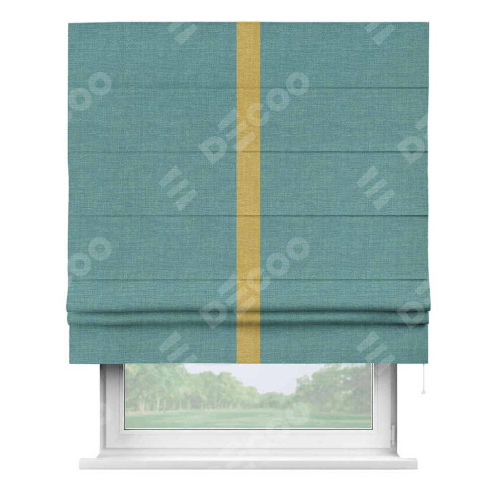 Римская штора «Кортин» с кантом Хайвэй, для проема, ткань лён бирюза