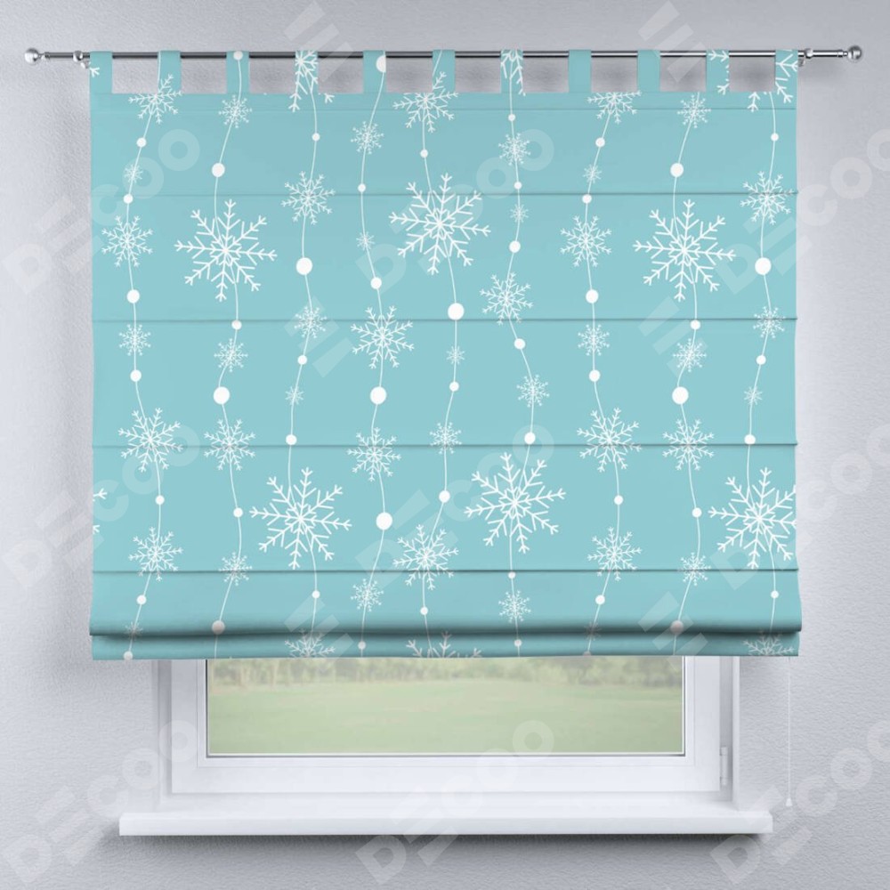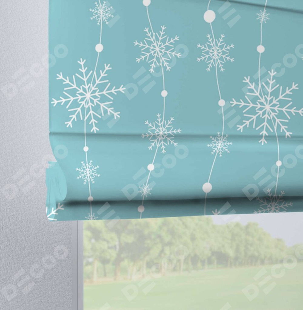 Римская штора производителя «Cortin», используется для проёма, пошита из ткани блэкаут с нанесением сублимационной печати «Гирлянда из снежинок». Данная модель пошита на петлях, комплектуется на выбор круглым карнизом и подходит для монтажа на стену. Римская штора на петлях имеет простую систему регулировки высоты, отличительным преимуществом данной модели является простой способ монтажа. Достаточно повесить ее на трубу и штора готова!