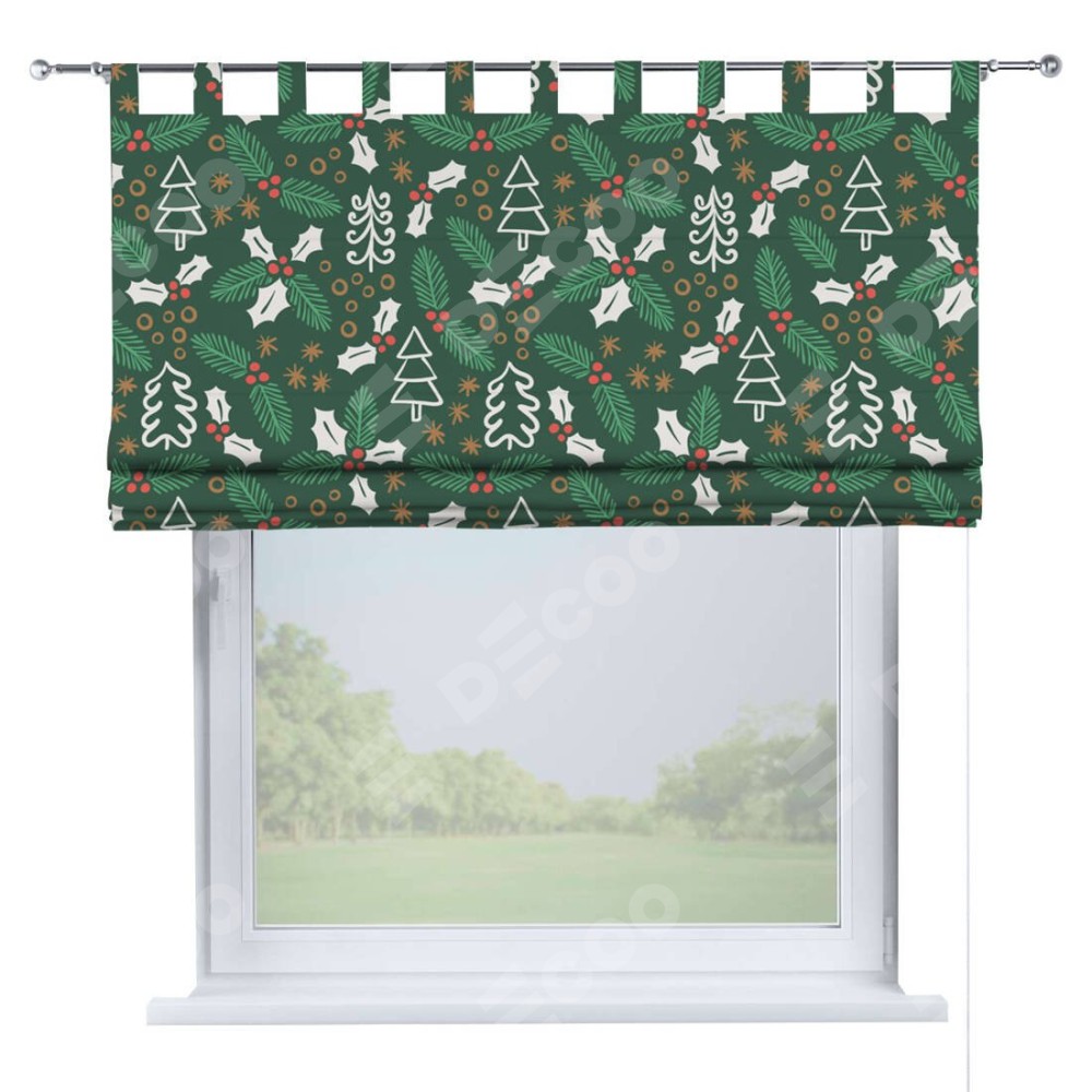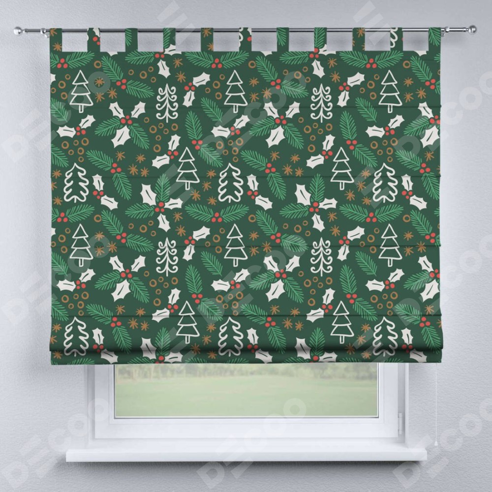 Римская штора производителя «Cortin», используется для проёма, пошита из ткани блэкаут с нанесением сублимационной печати «Рождественский узор». Данная модель пошита на петлях, комплектуется на выбор круглым карнизом и подходит для монтажа на стену. Римская штора на петлях имеет простую систему регулировки высоты, отличительным преимуществом данной модели является простой способ монтажа. Достаточно повесить ее на трубу и штора готова!
