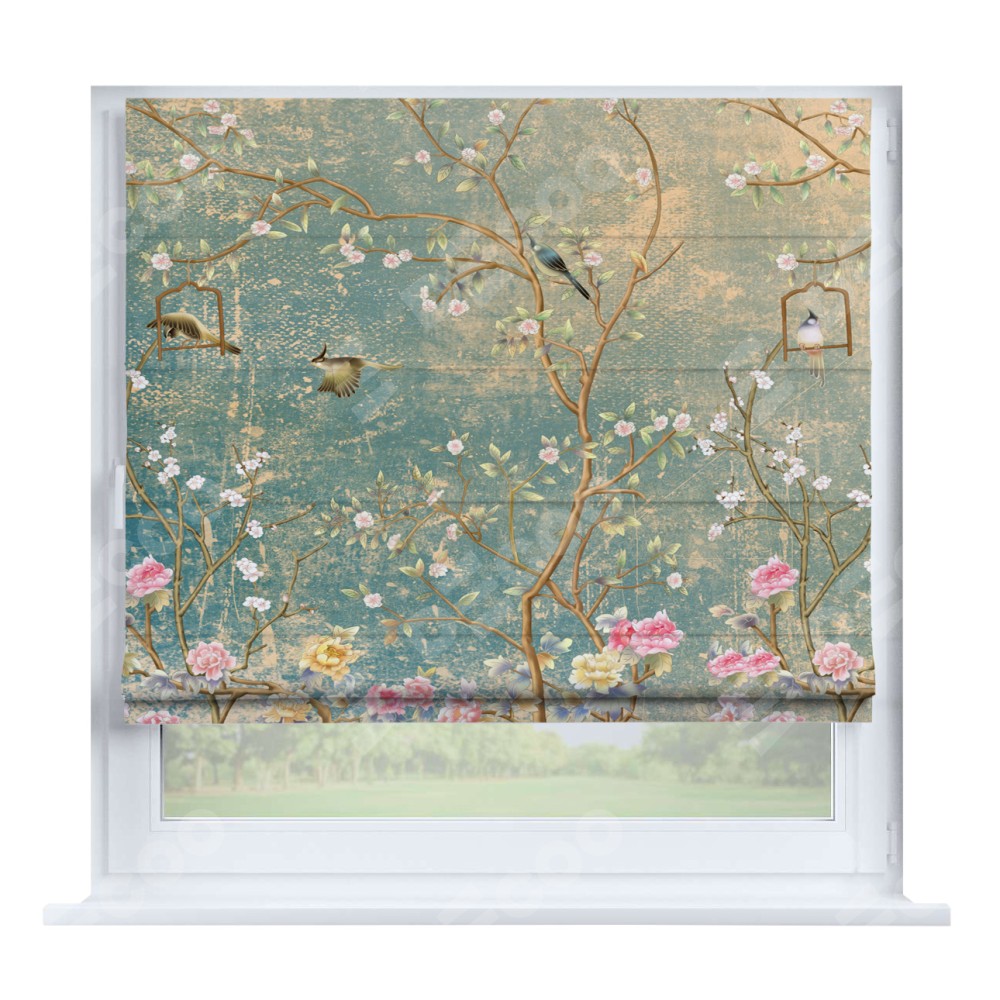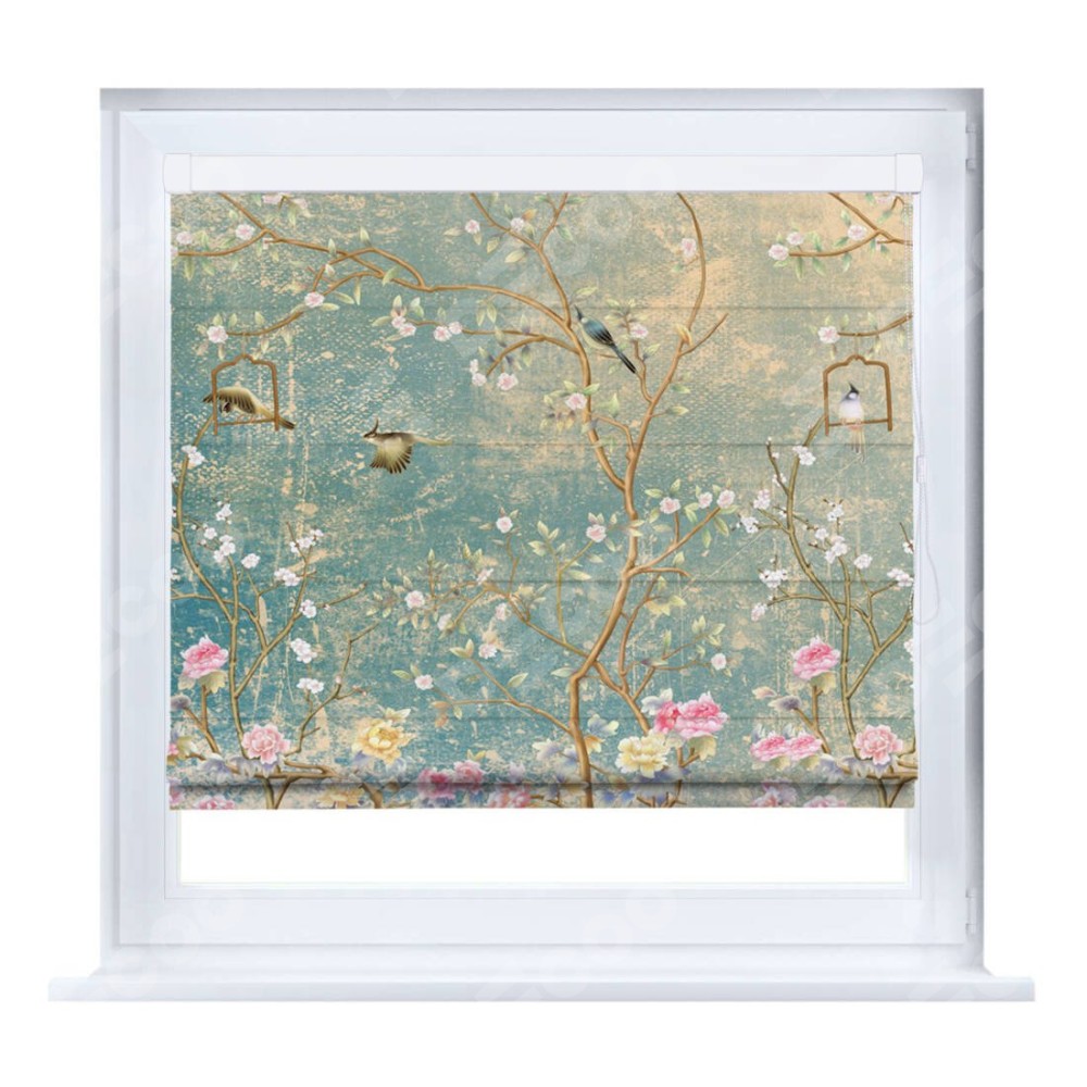 Римская штора производителя «Cortin», устанавливается на створку окна, пошита из ткани блэкаут с нанесением сублимационной печати «Цветущий сад». Штора шьётся по индивидуальным размерам, для данного типа римской шторы возможная ширина от 35 до 150 см., высота до 250 см.