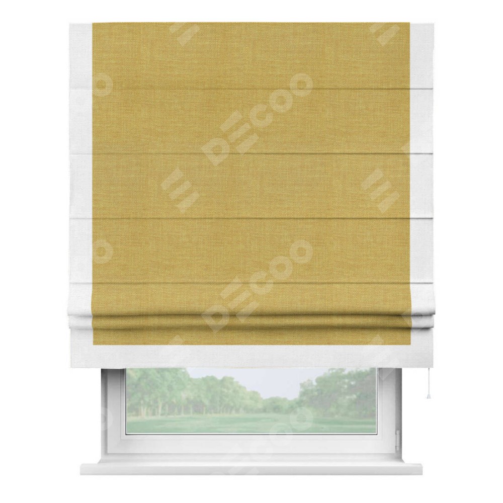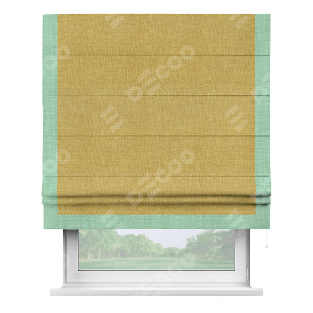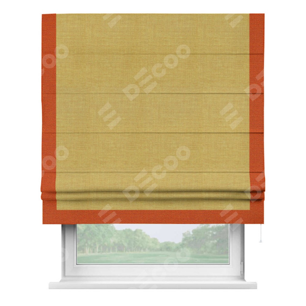 Римская штора «Кортин» с кантом Виктория, для проема, ткань лён горчичный