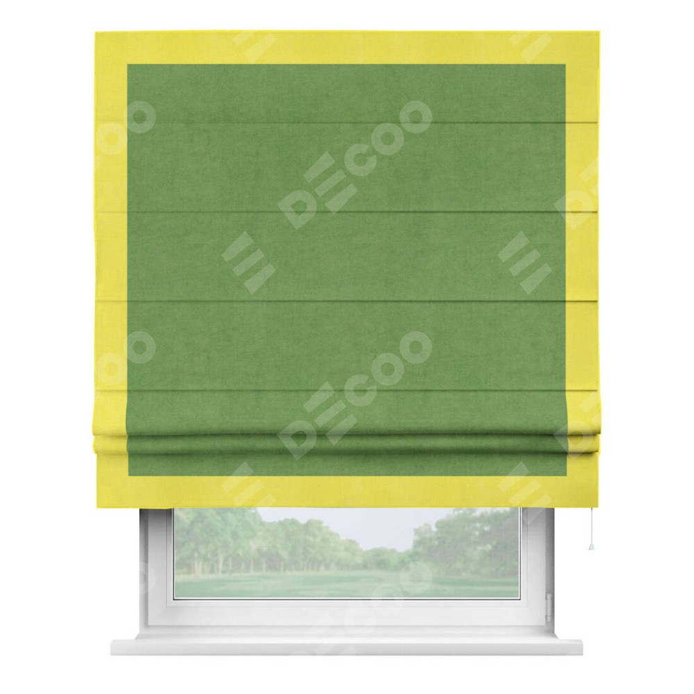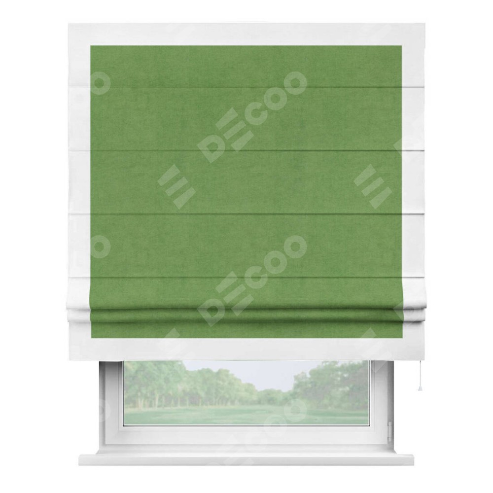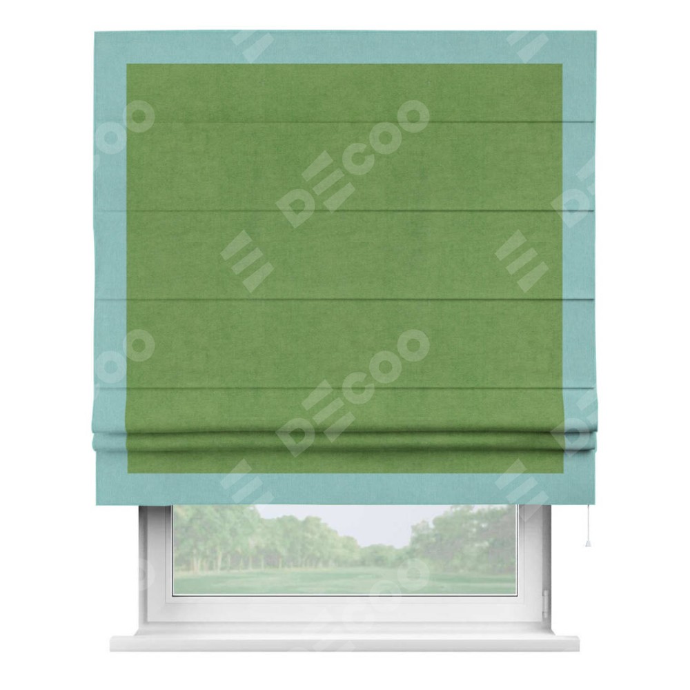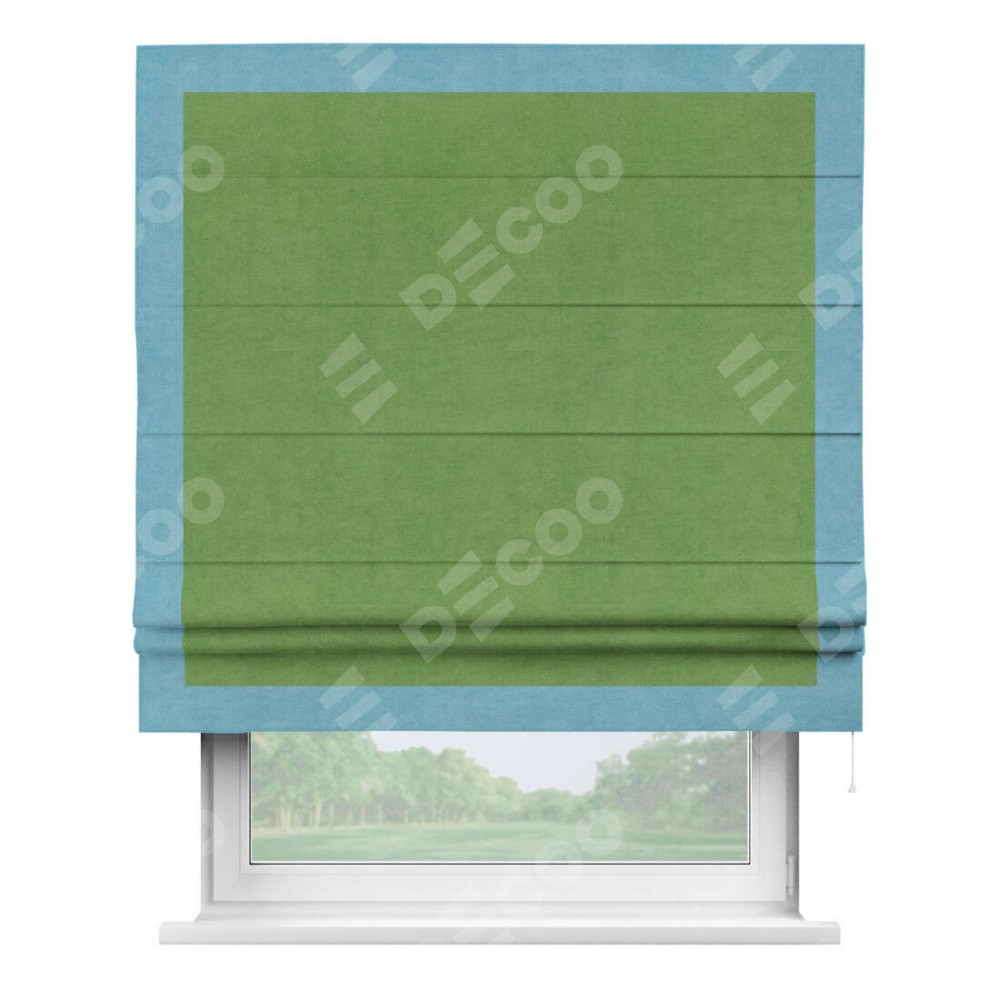 Римская штора «Кортин» с кантом Чесс, для проема, ткань вельвет салатовый