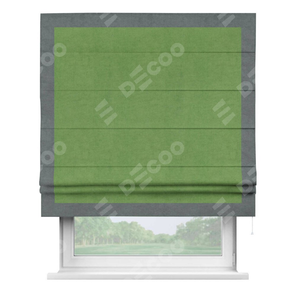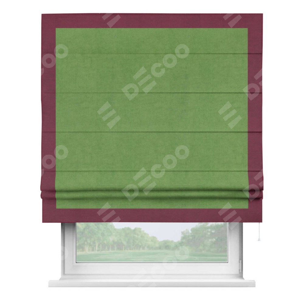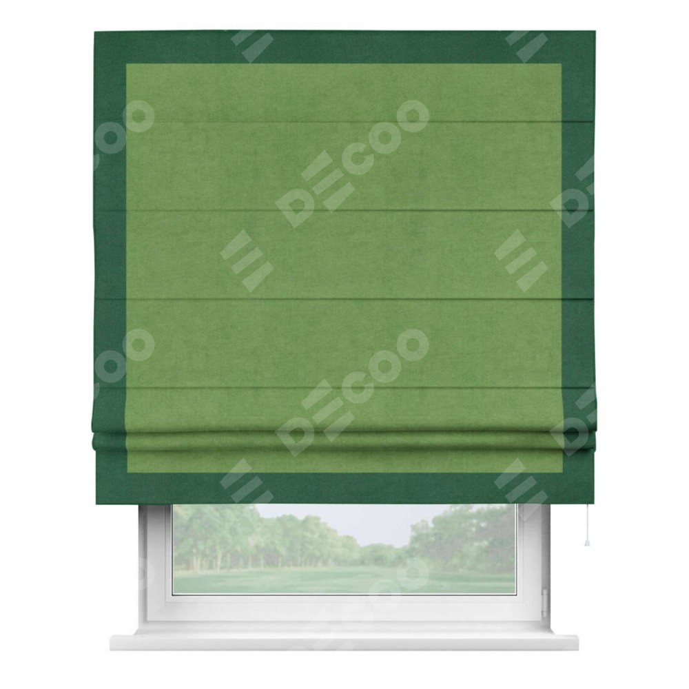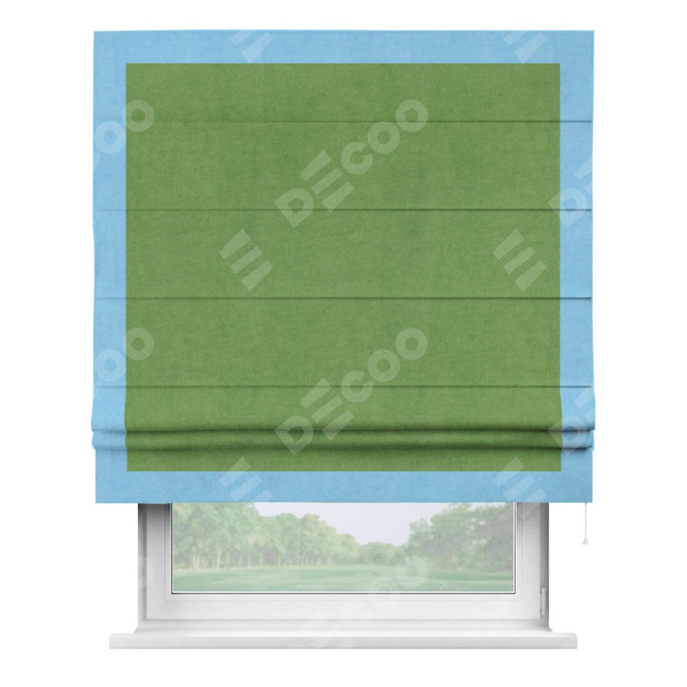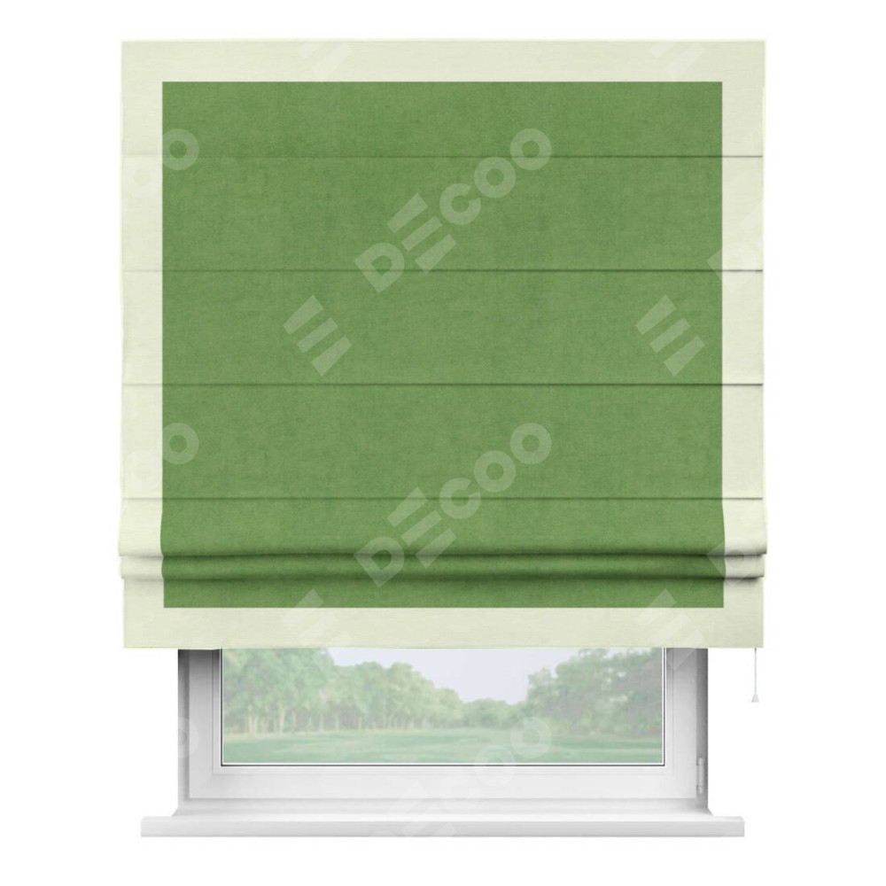 Римская штора «Кортин» с кантом Чесс, для проема, ткань вельвет салатовый