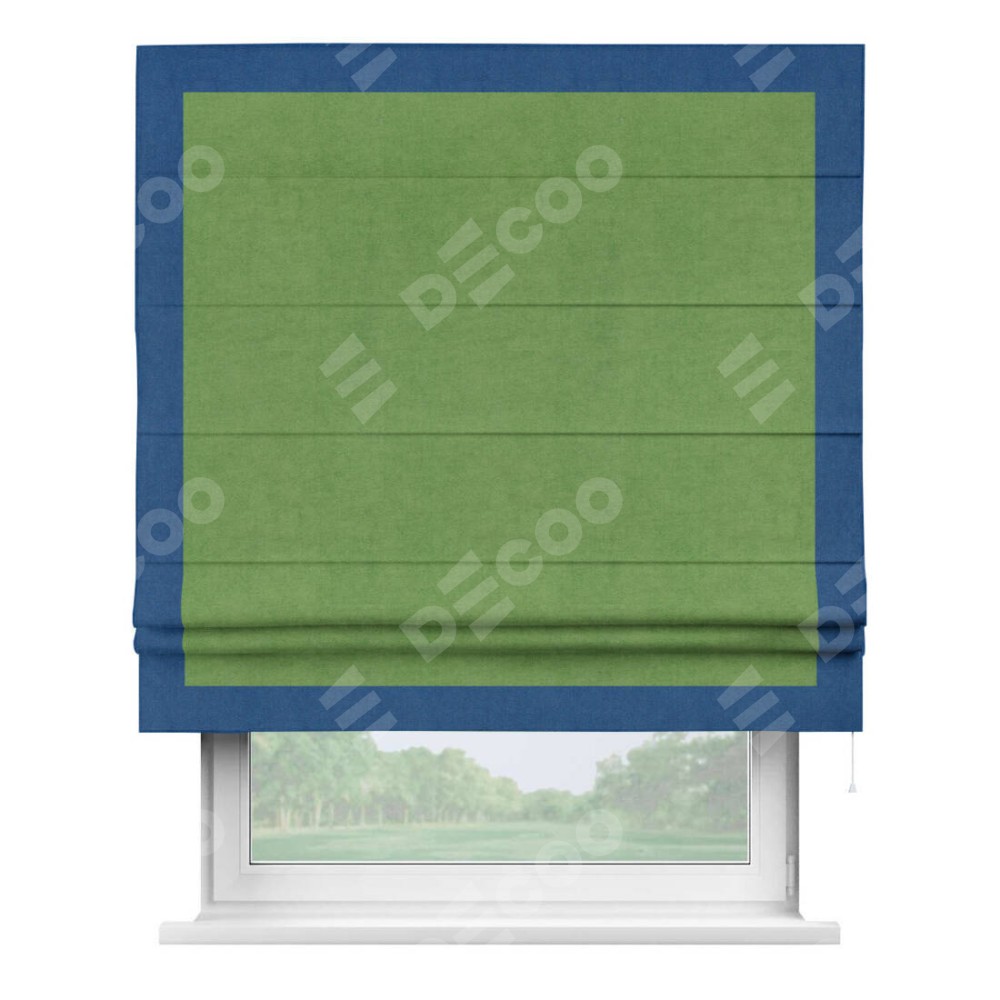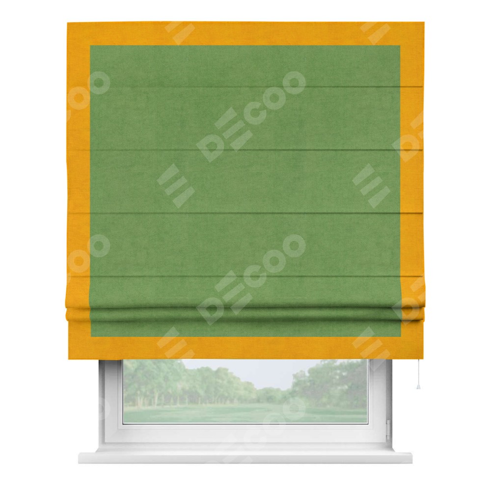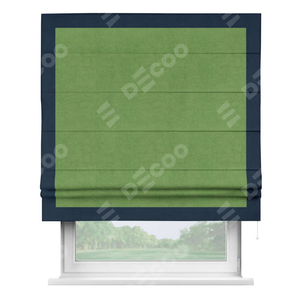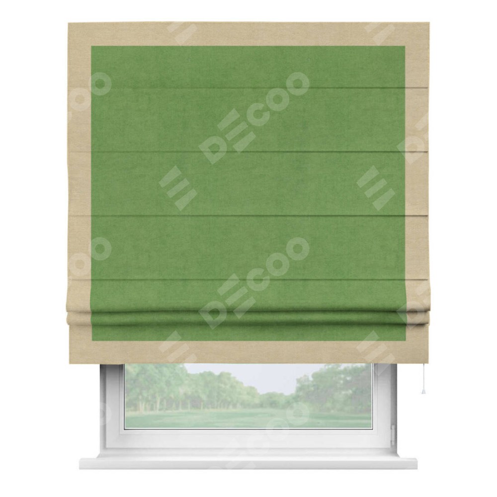 Римская штора «Кортин» с кантом Чесс, для проема, ткань вельвет салатовый