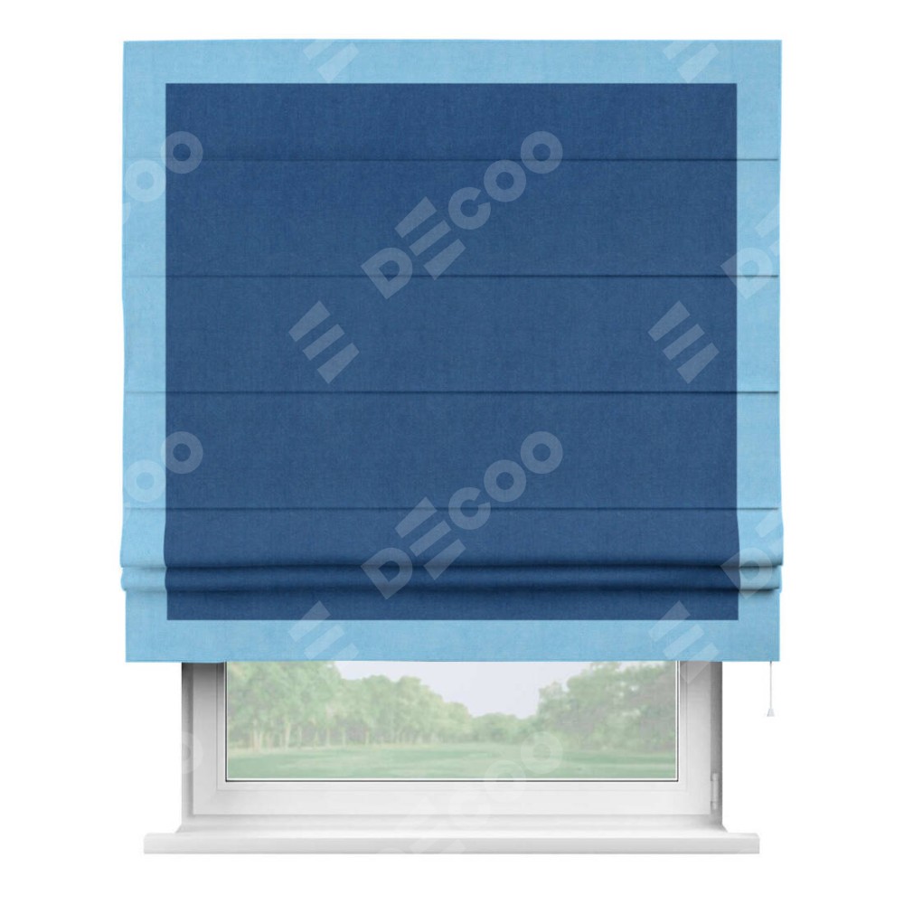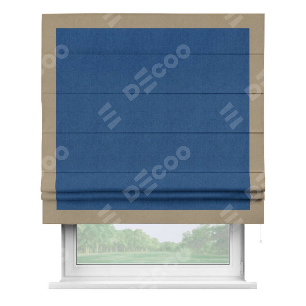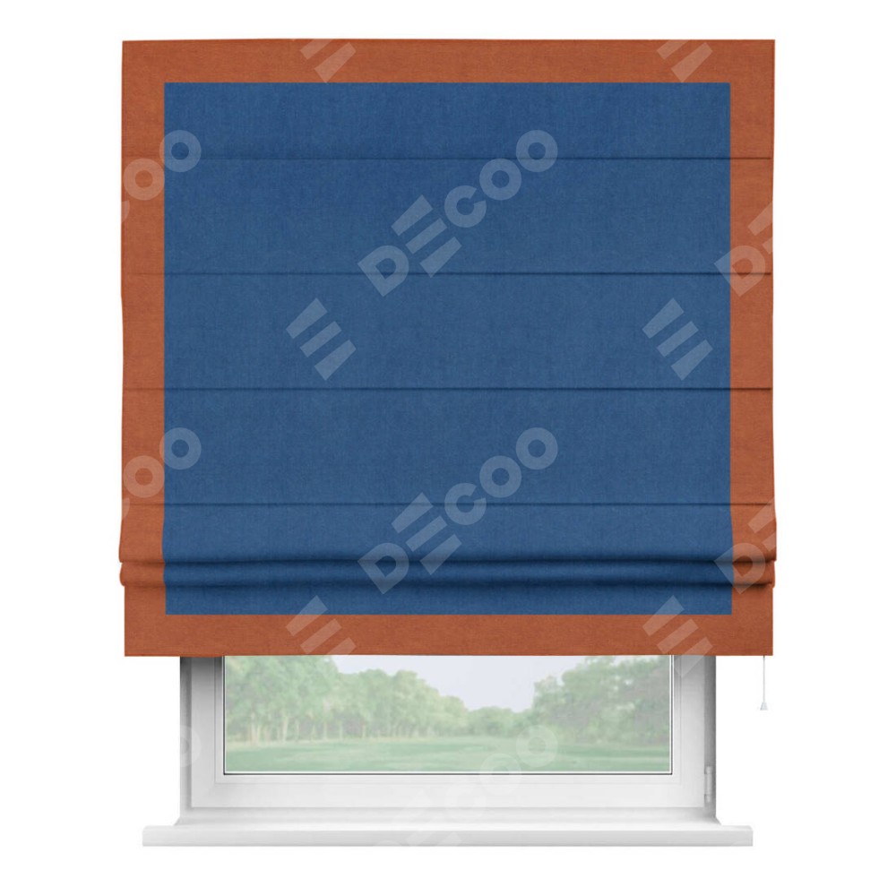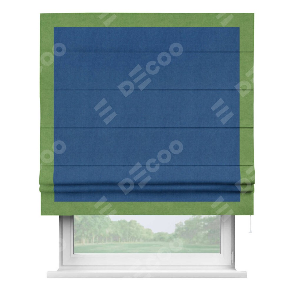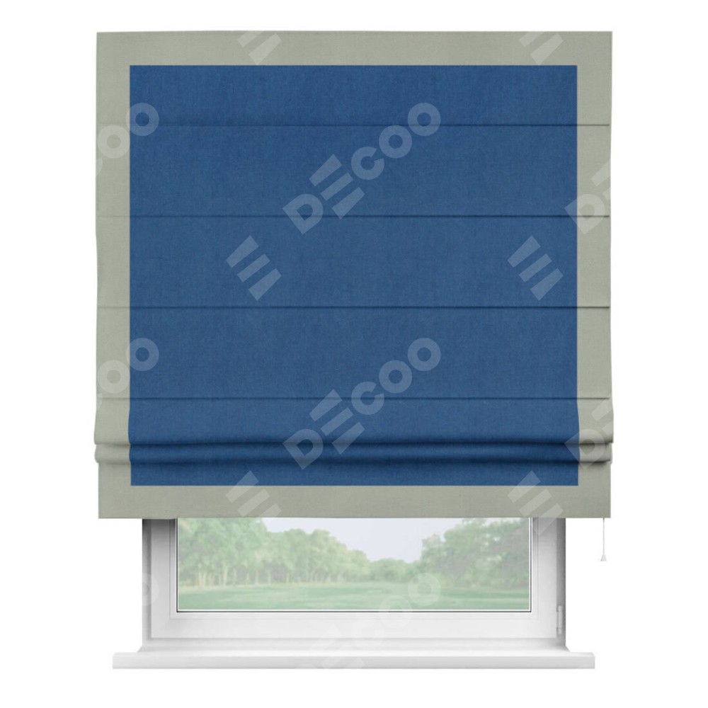 Римская штора «Кортин» с кантом Чесс, для проема, ткань вельвет синий