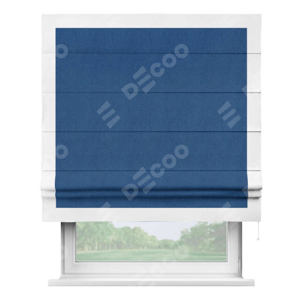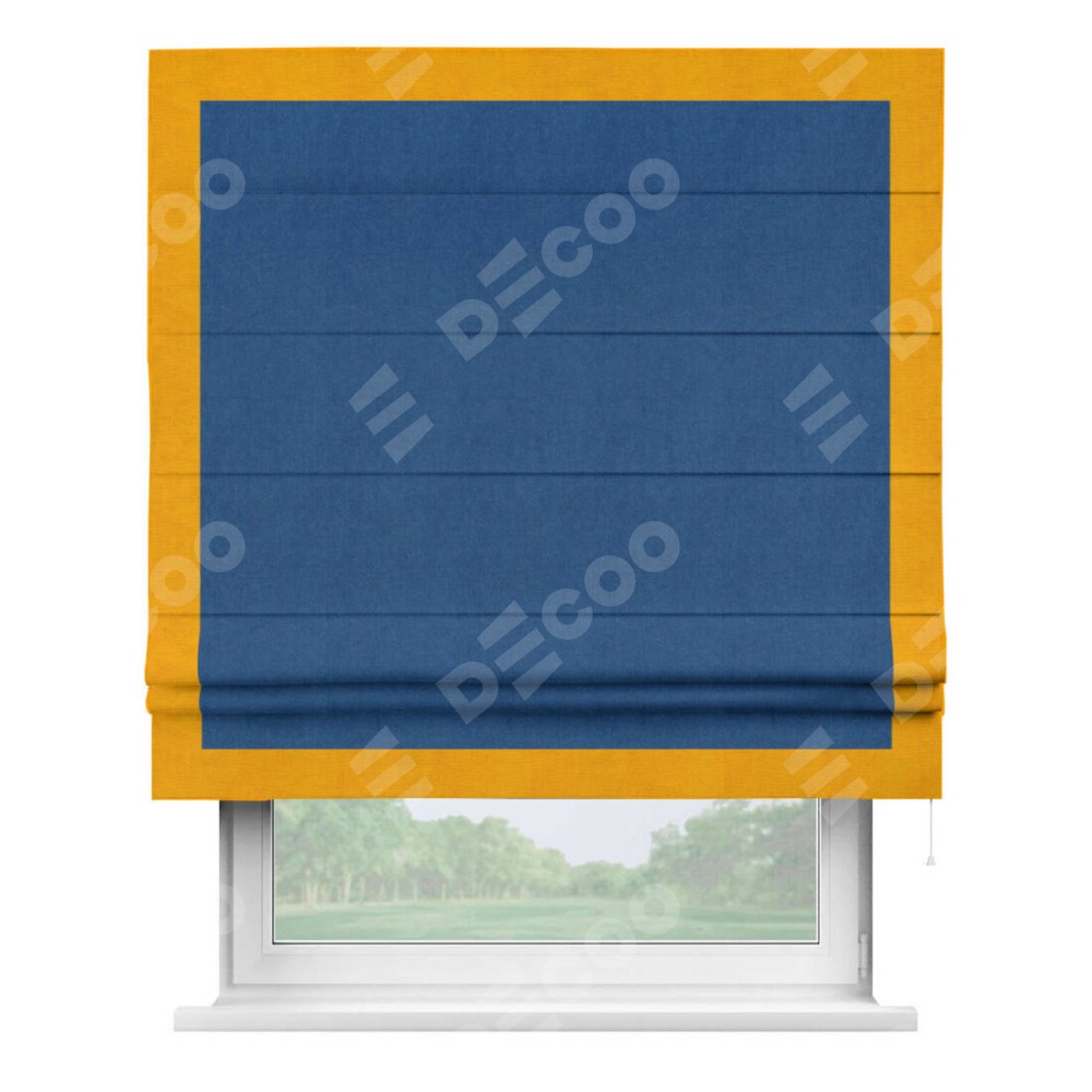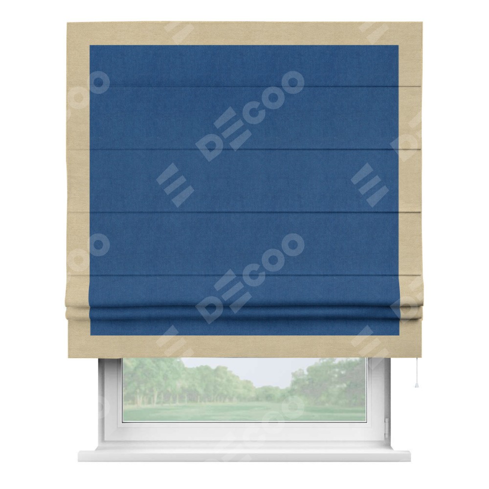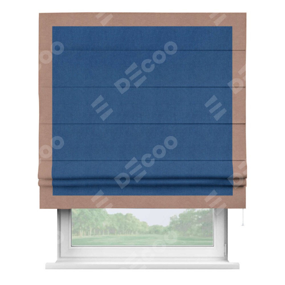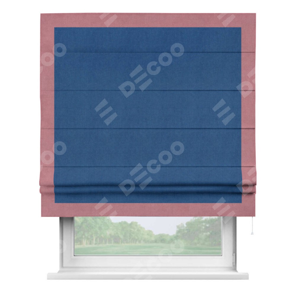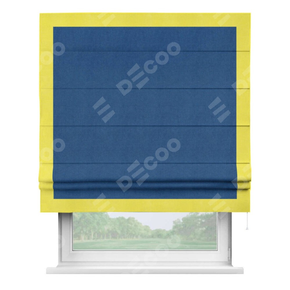 Римская штора «Кортин» с кантом Чесс, для проема, ткань вельвет синий