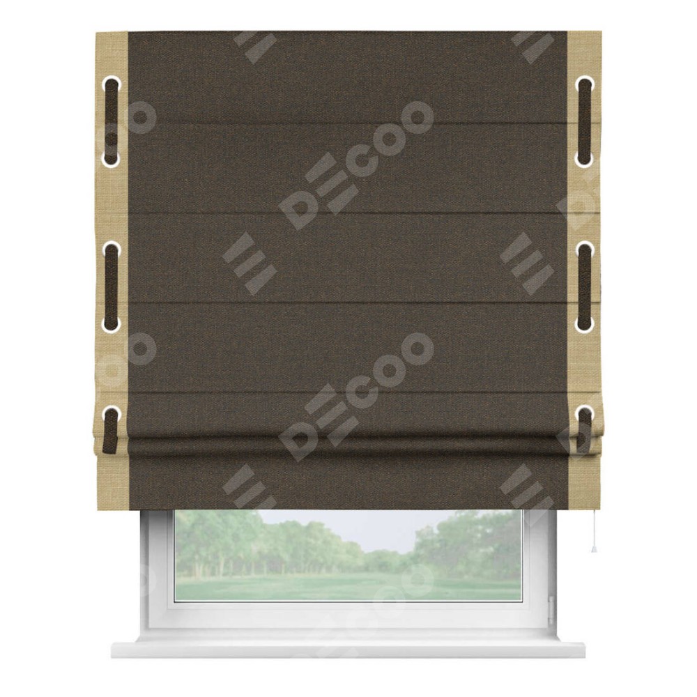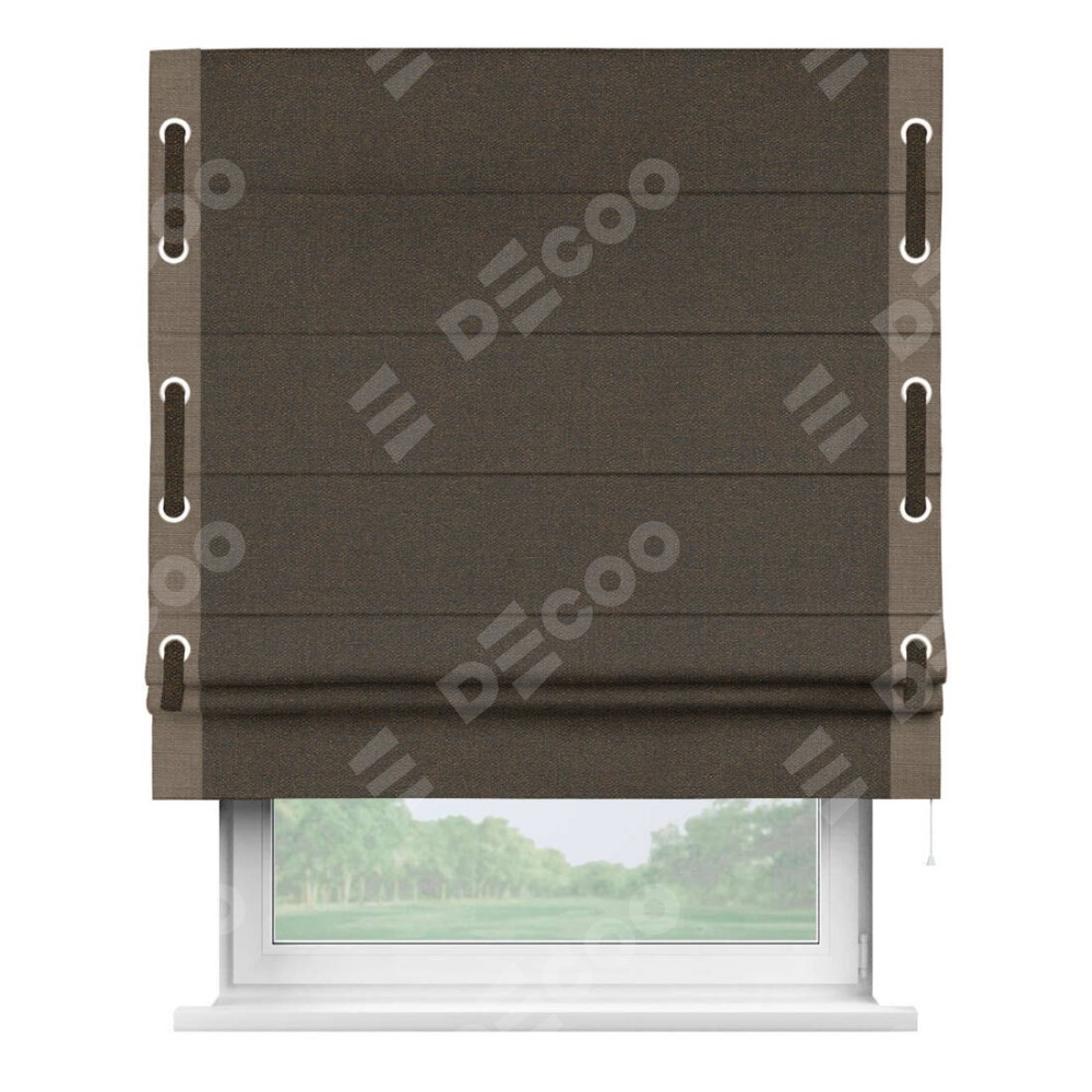 Римская штора «Кортин» с кантом Стрим Дуо (люверсы с пояском), для проема, ткань лён темно-коричневый
