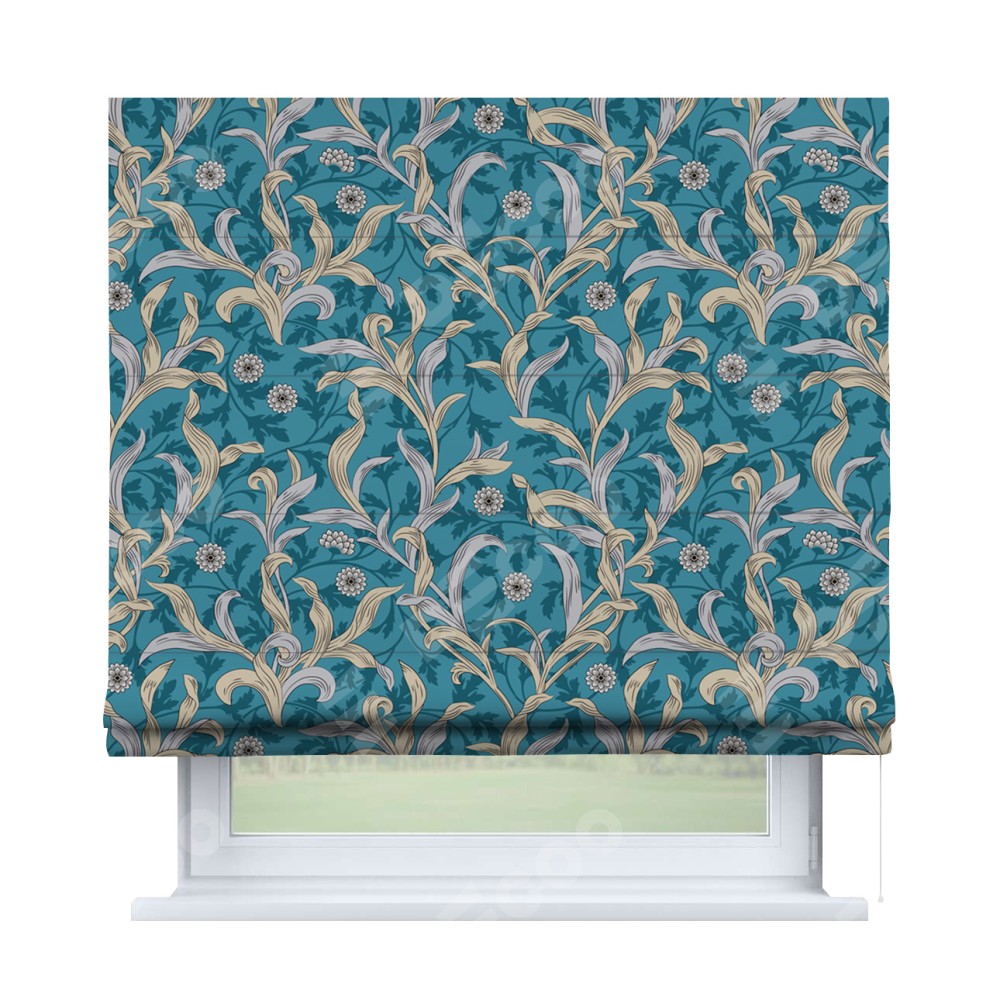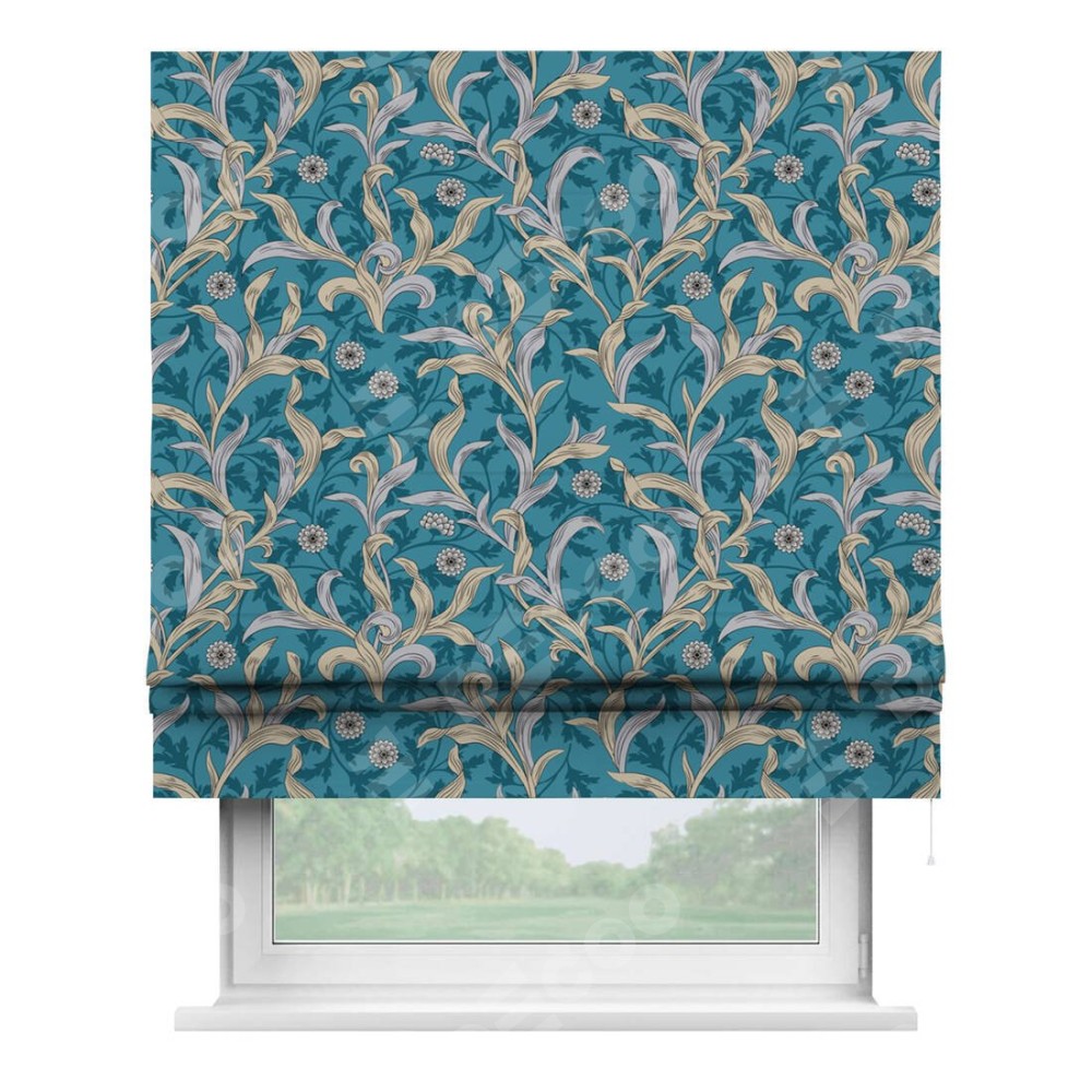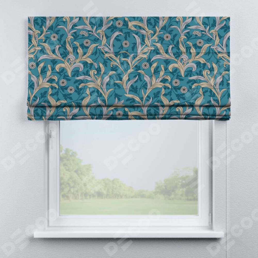 Римская штора производителя «Cortin», используется для проёма, пошита из ткани блэкаут с нанесением сублимационной печати «Винтажные листья». Имеет универсальный механизм и подходит для монтажа: на потолок, на стену и в нишу.
