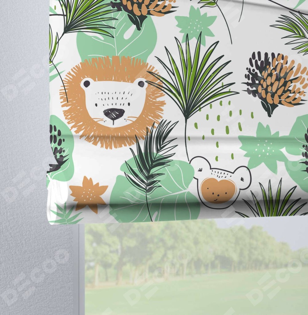 Римская штора «Кортин» на петлях «Животные из джунглей»